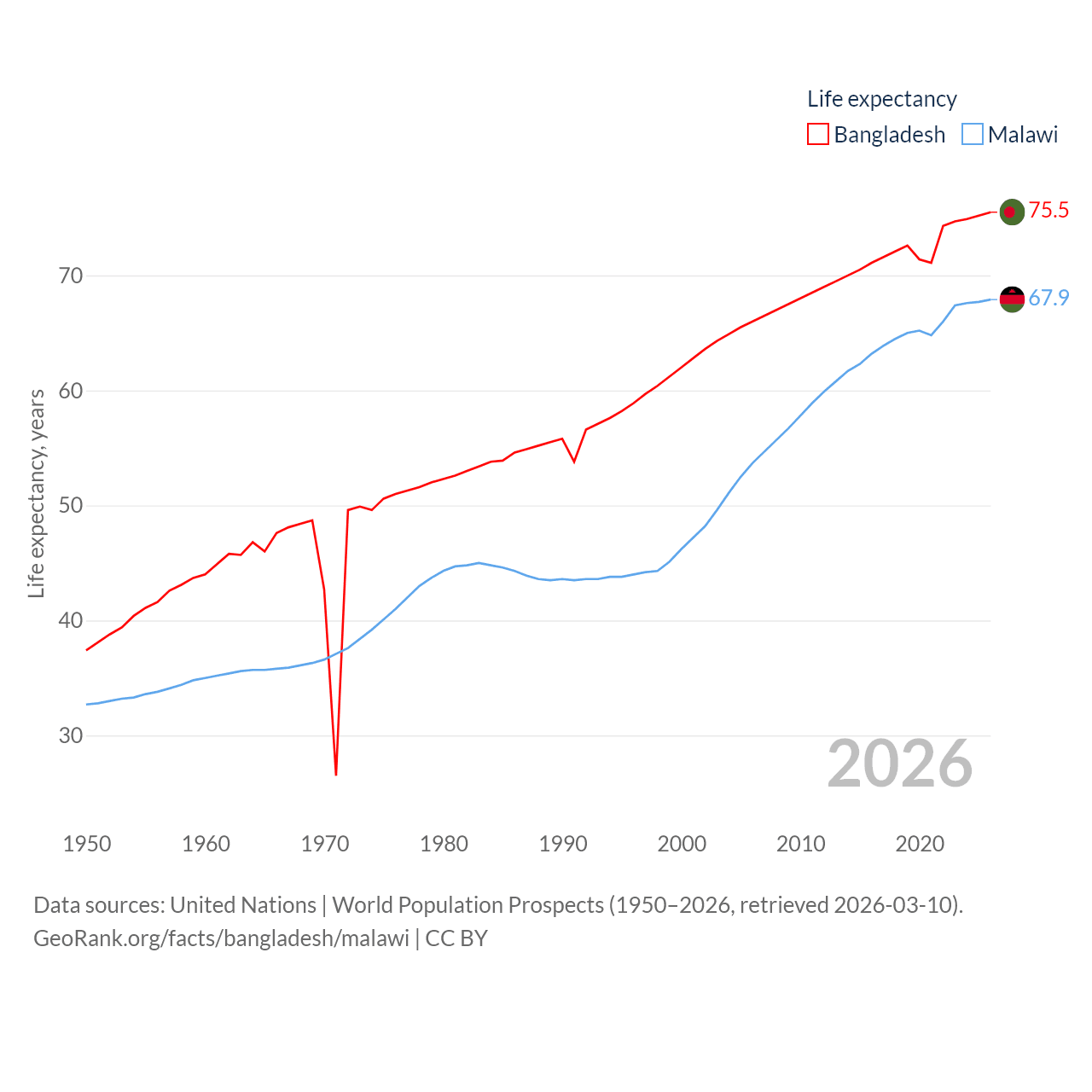 - United Nations | World Population Prospects (1950–2026, retrieved 2026-03-10)