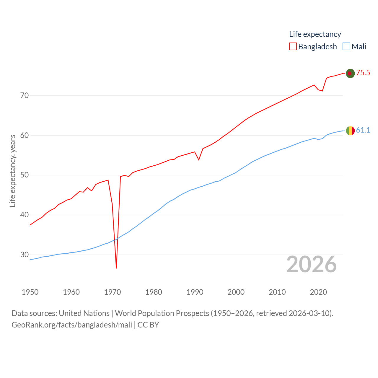 - United Nations | World Population Prospects (1950–2026, retrieved 2026-03-10)
