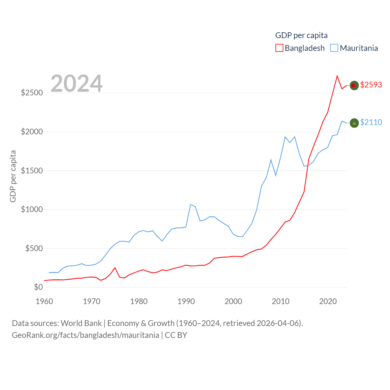 Bangladesh and Mauritania economies compared