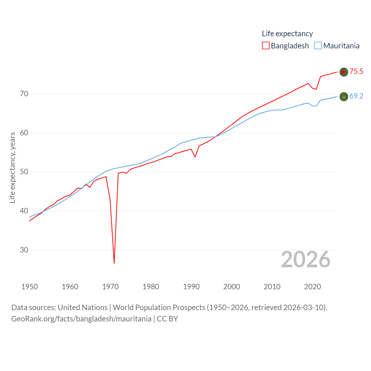 - United Nations | World Population Prospects (1950–2026, retrieved 2026-03-10)