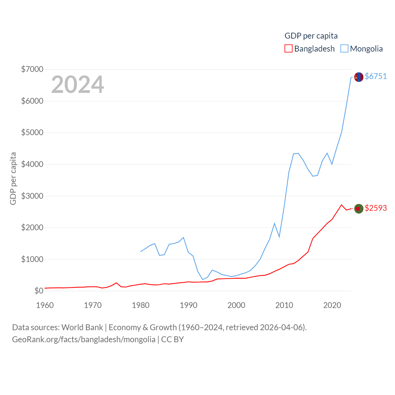 Bangladesh and Mongolia economies compared