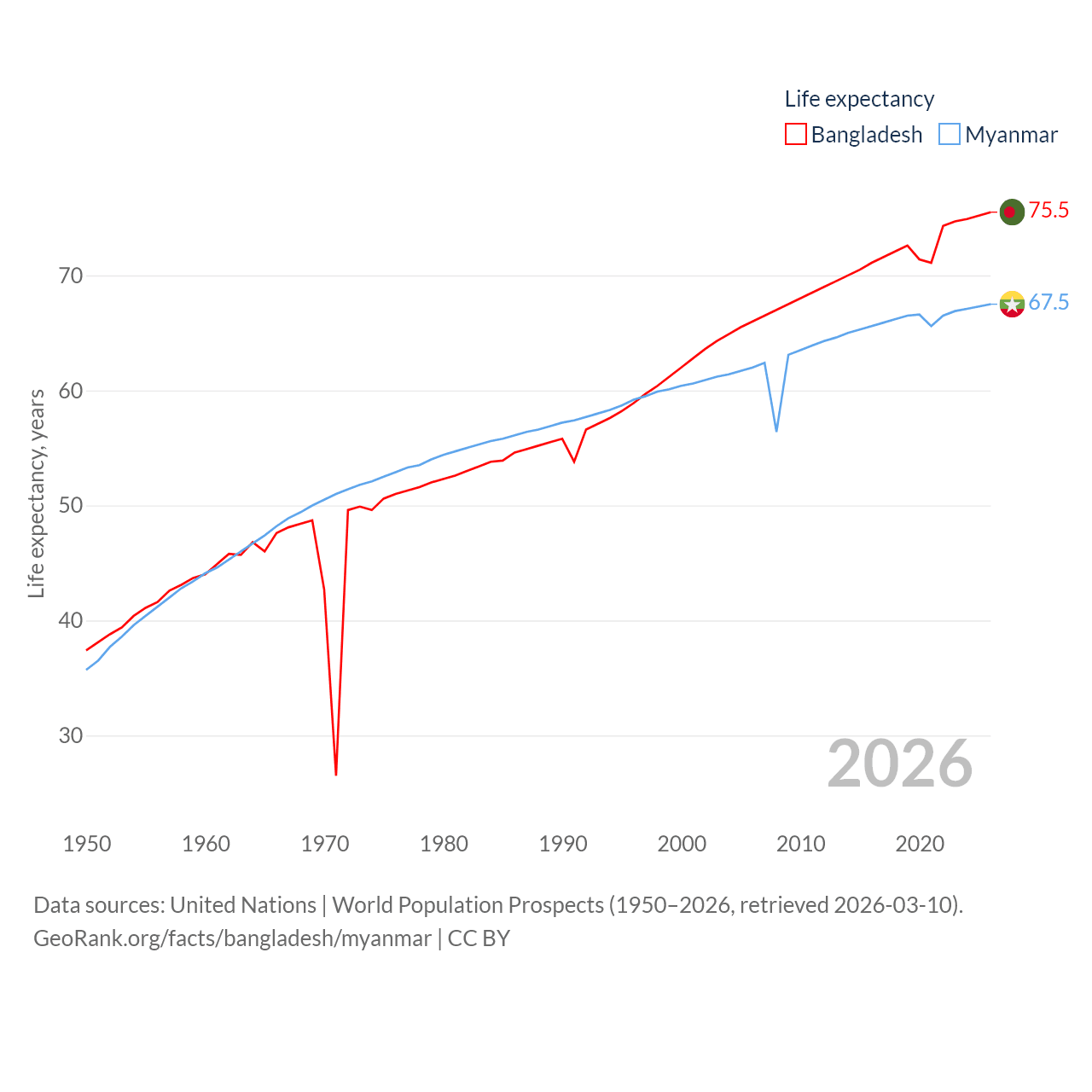 - United Nations | World Population Prospects (1950–2026, retrieved 2026-03-10)
