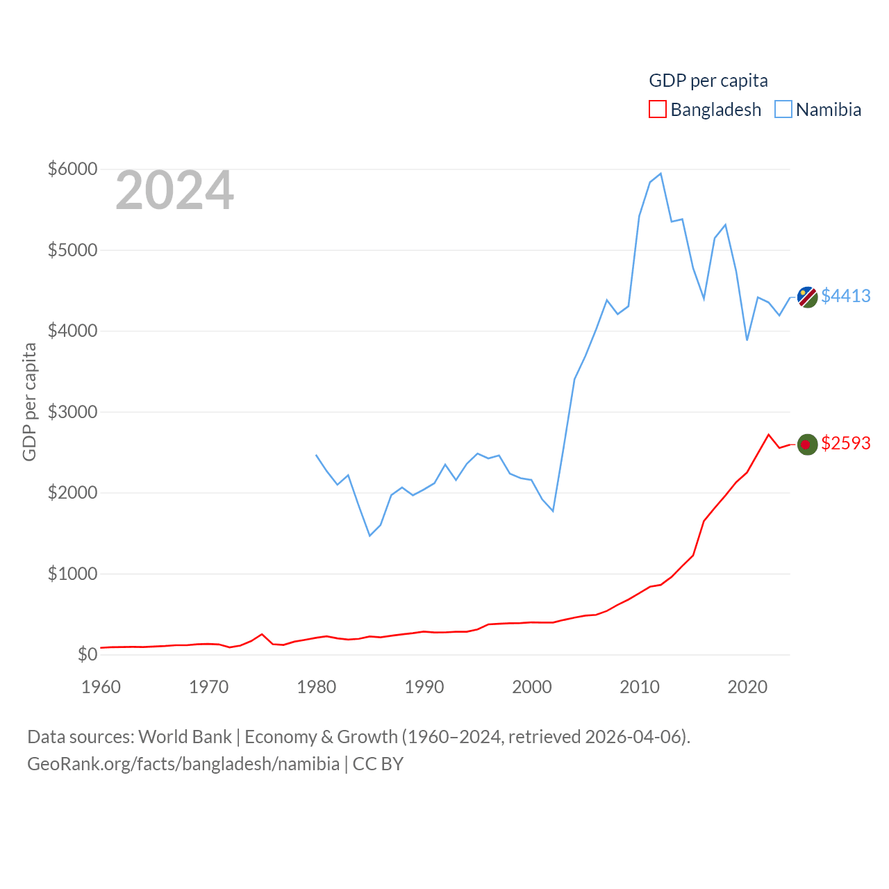 Bangladesh and Namibia economies compared