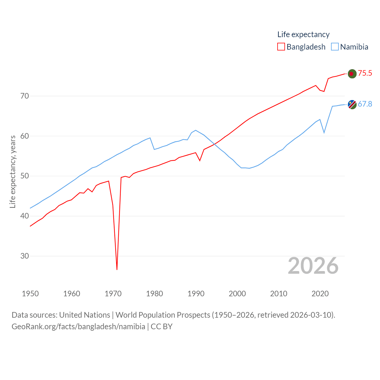 - United Nations | World Population Prospects (1950–2026, retrieved 2026-03-10)