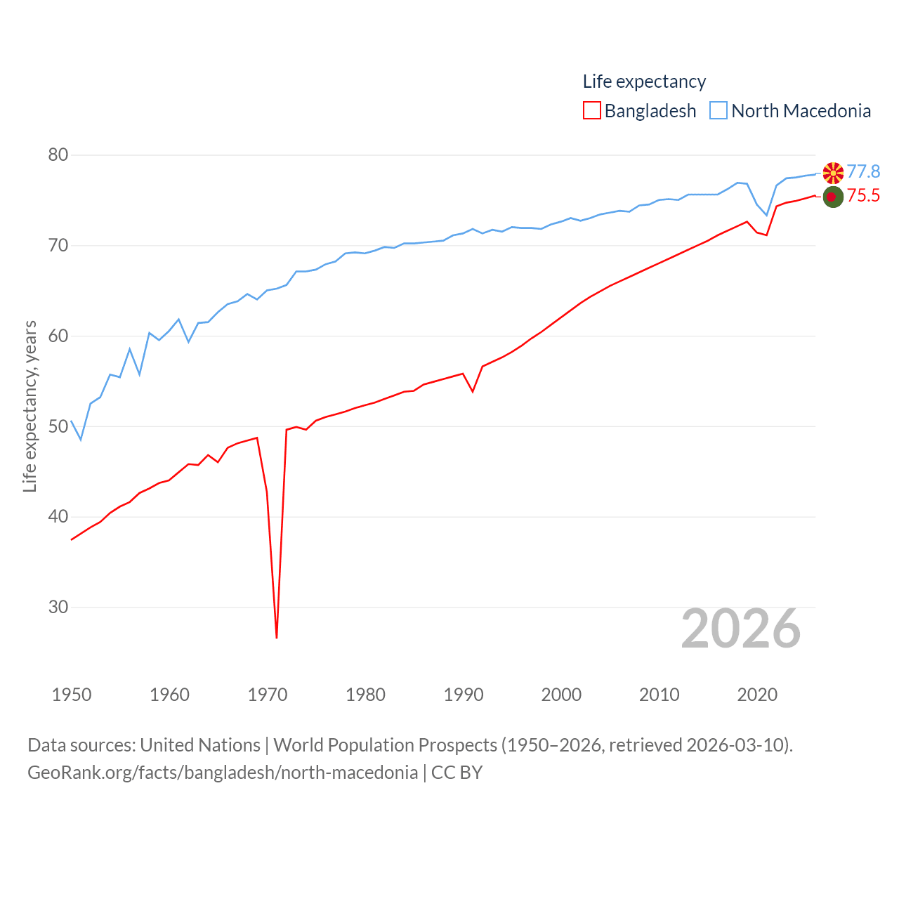 - United Nations | World Population Prospects (1950–2026, retrieved 2026-03-10)