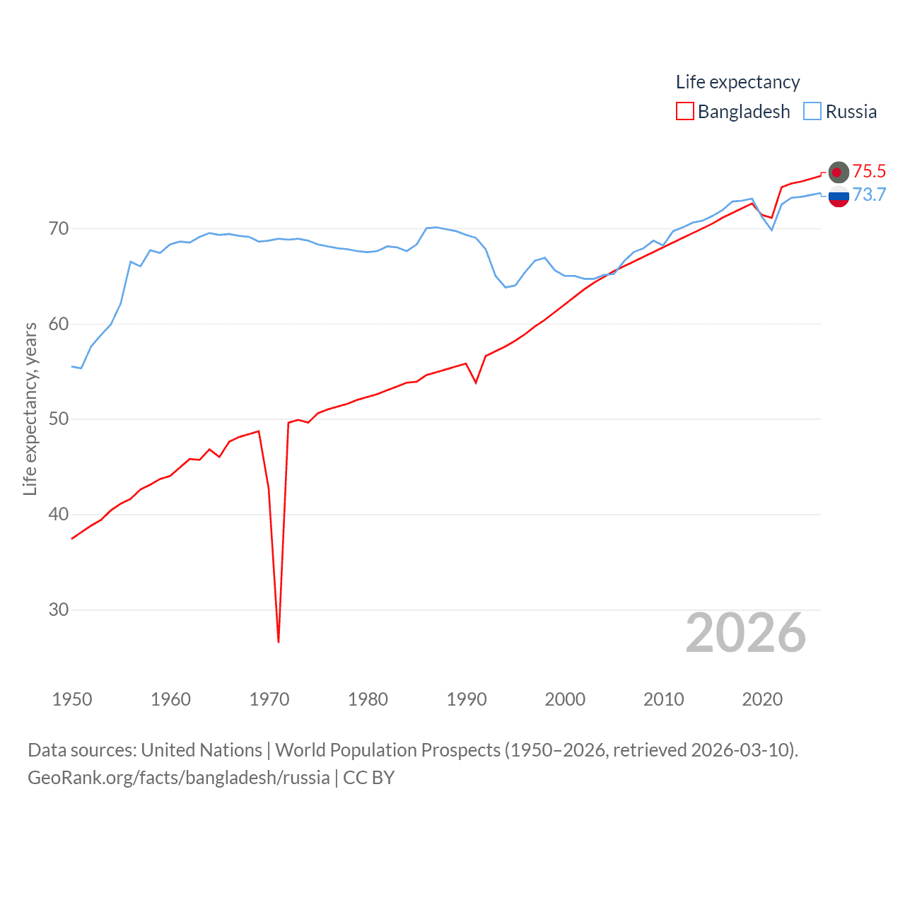 - United Nations | World Population Prospects (1950–2026, retrieved 2026-03-10)