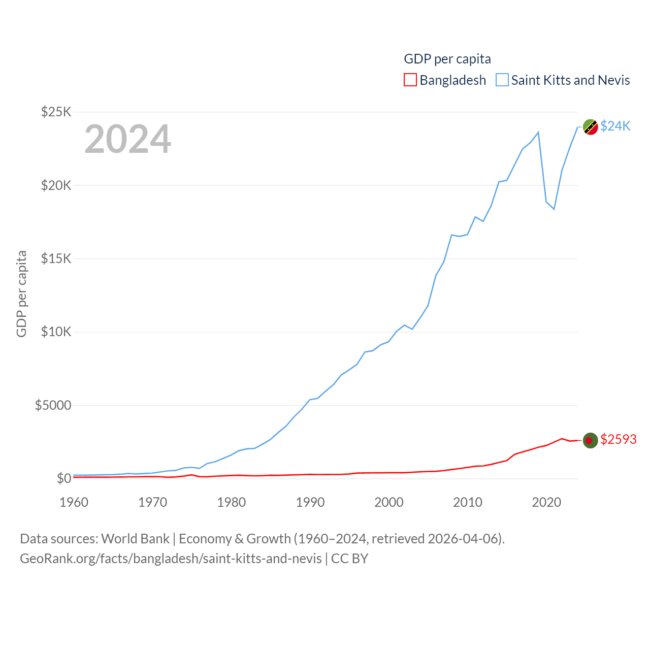 Bangladesh and Saint Kitts and Nevis economies compared