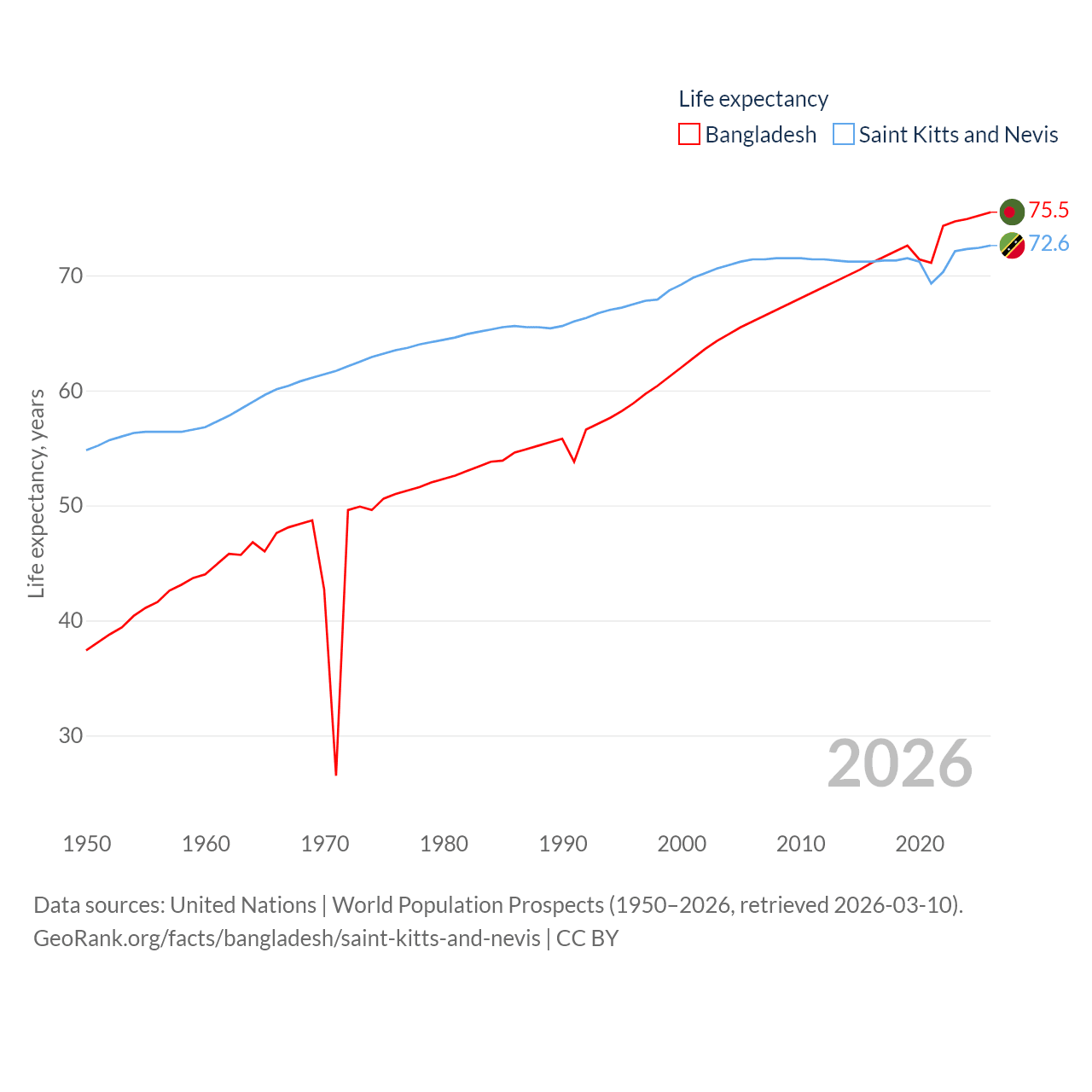 - United Nations | World Population Prospects (1950–2026, retrieved 2026-03-10)