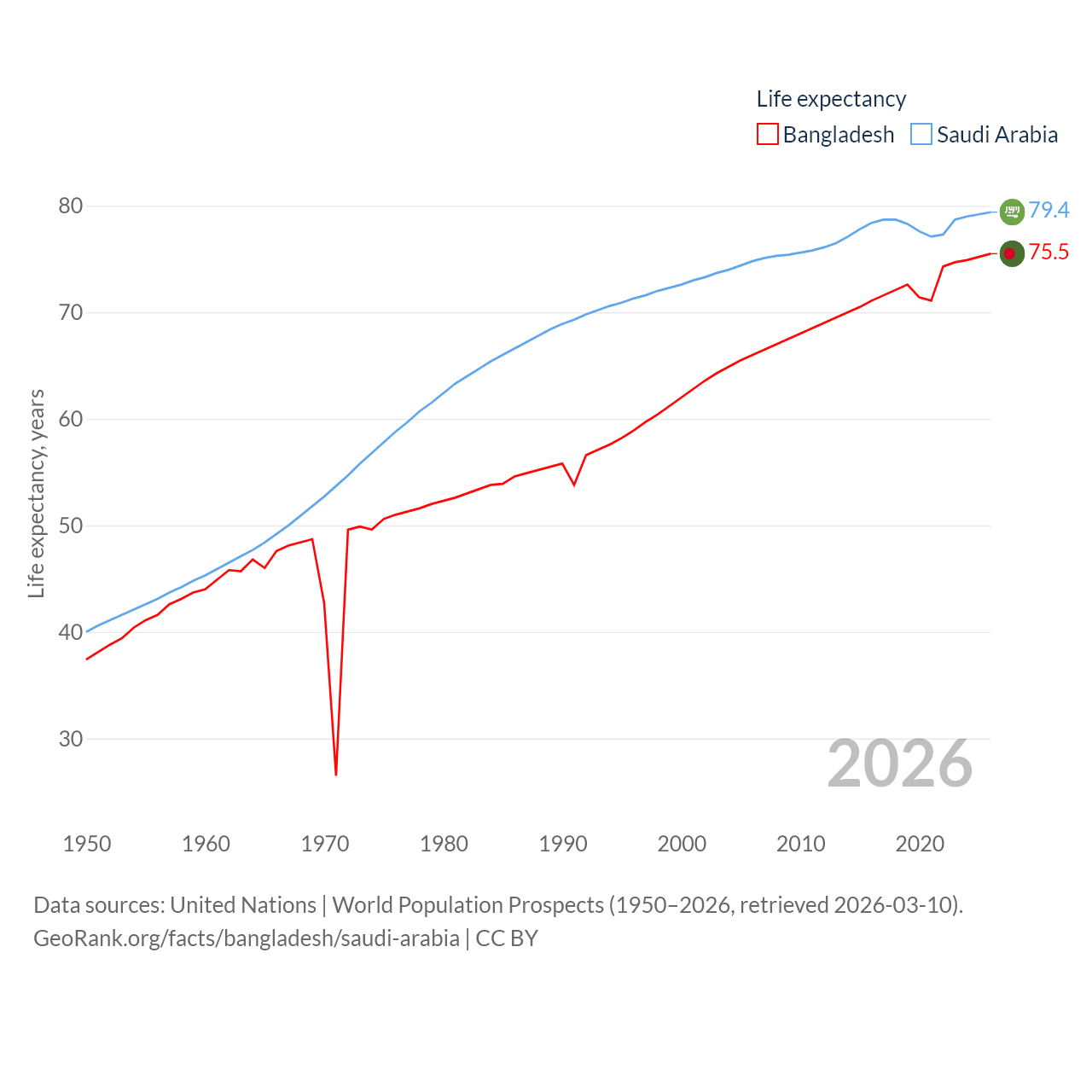 - United Nations | World Population Prospects (1950–2026, retrieved 2026-03-10)