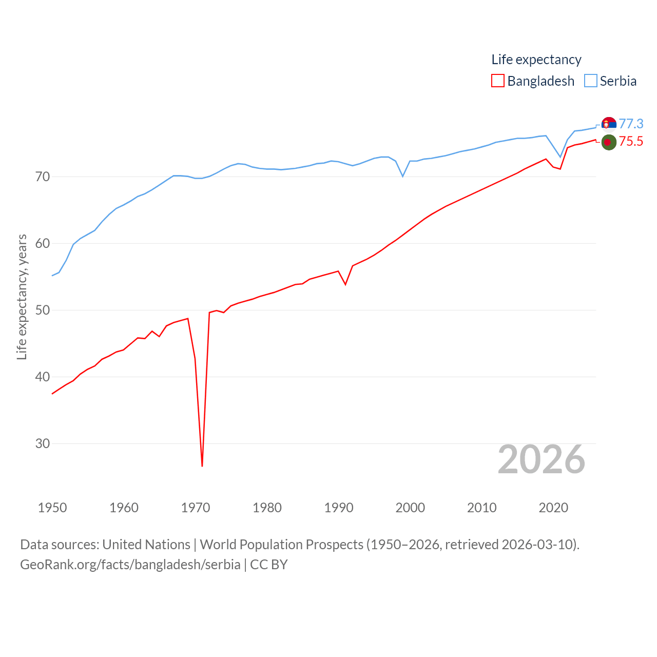 - United Nations | World Population Prospects (1950–2026, retrieved 2026-03-10)