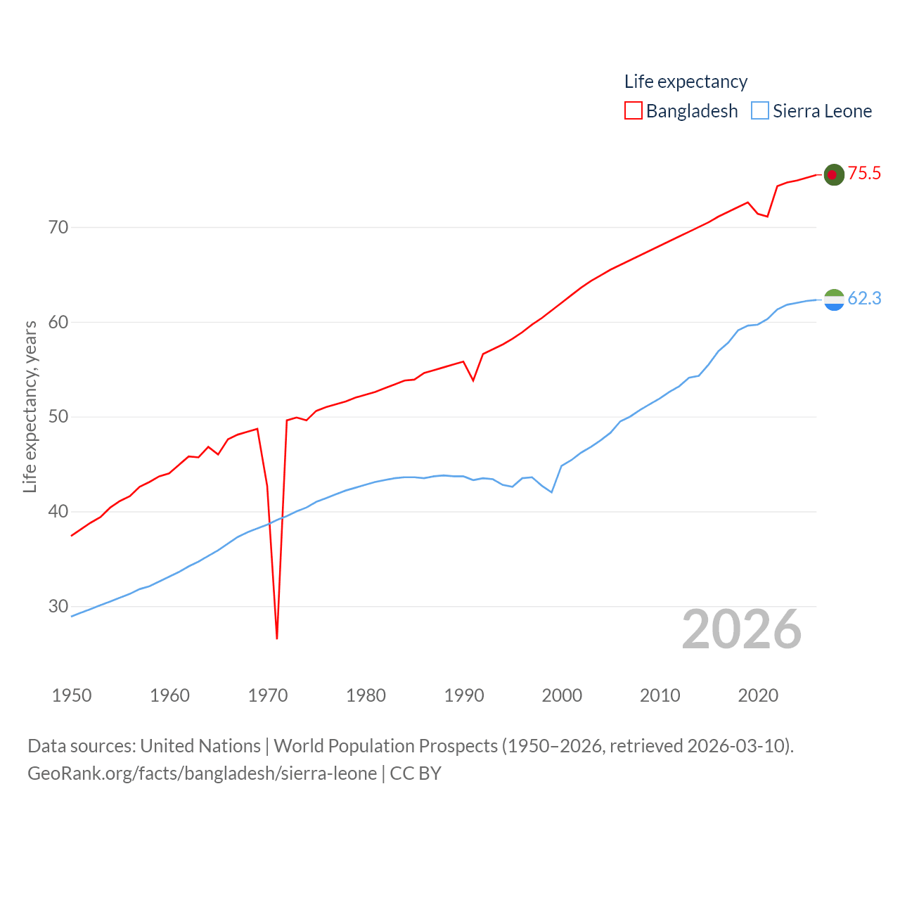 - United Nations | World Population Prospects (1950–2026, retrieved 2026-03-10)