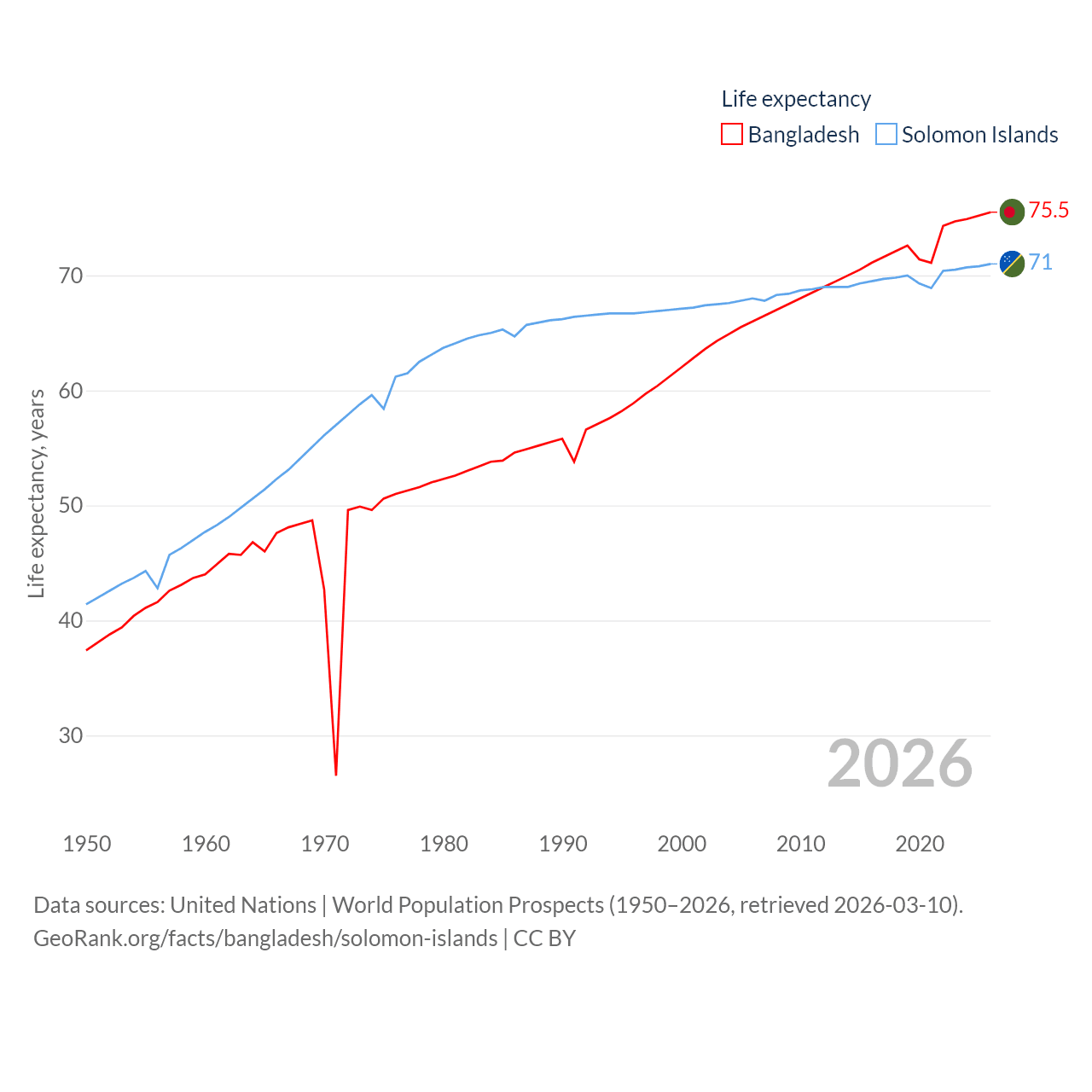 - United Nations | World Population Prospects (1950–2026, retrieved 2026-03-10)