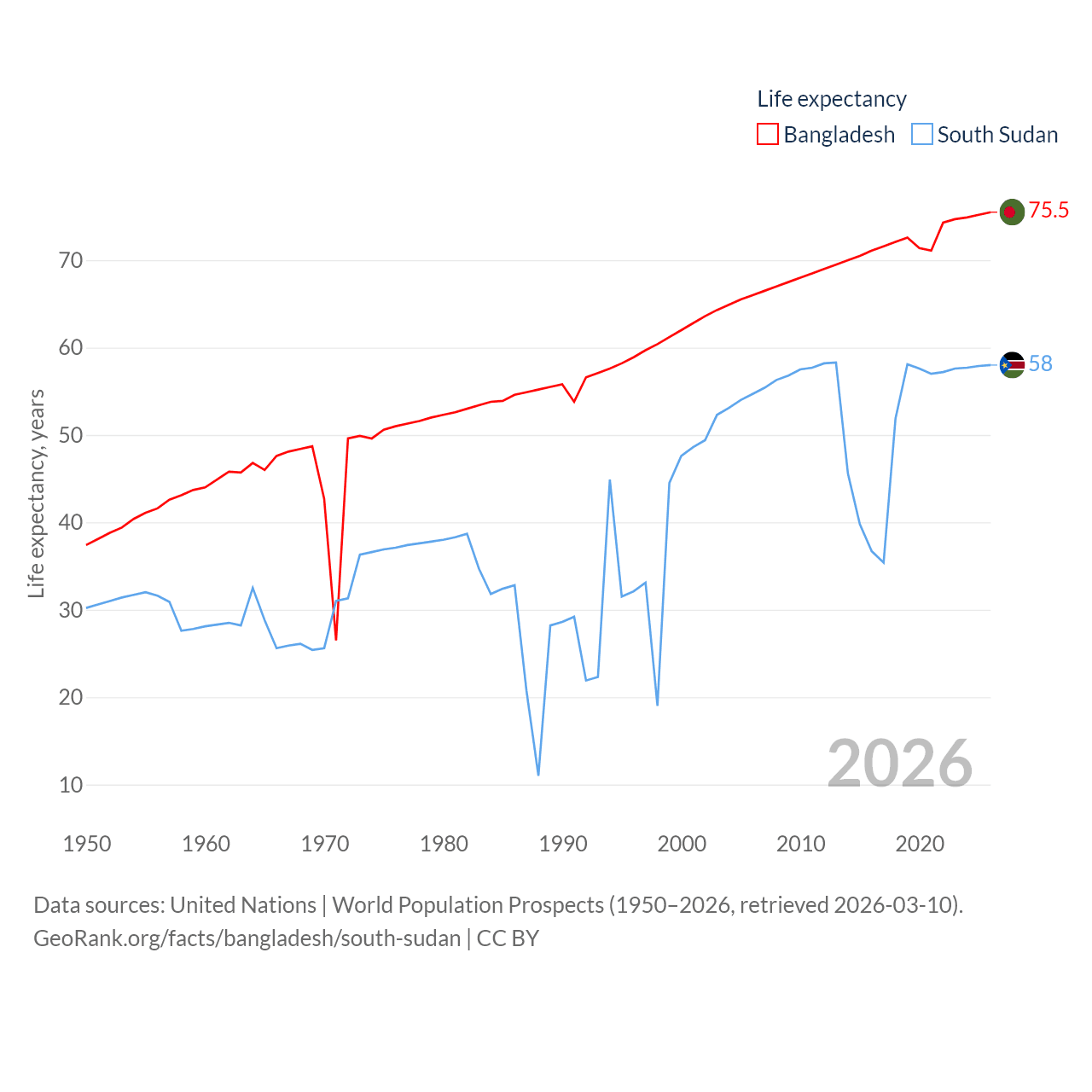 - United Nations | World Population Prospects (1950–2026, retrieved 2026-03-10)
