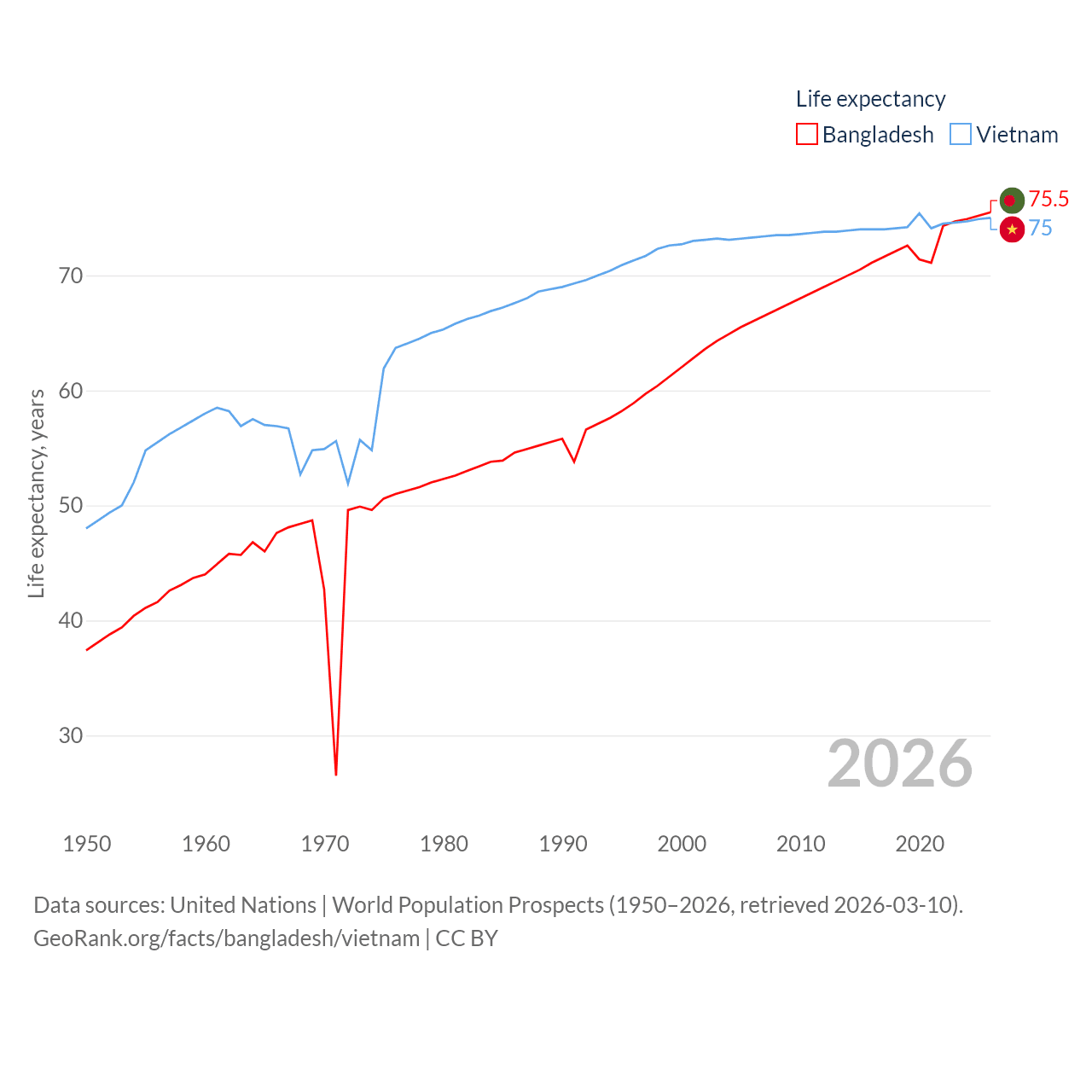 - United Nations | World Population Prospects (1950–2026, retrieved 2026-03-10)