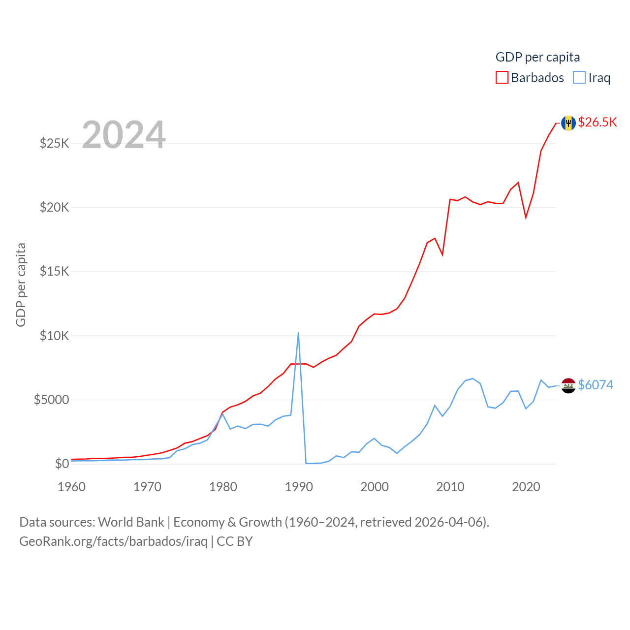 Barbados and Iraq economies compared