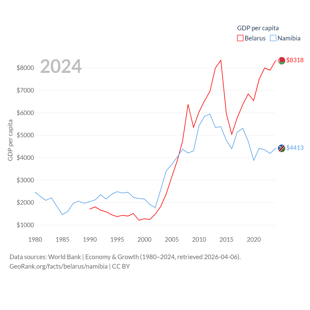 Data sources: World Bank | Economy & Growth (1980–2024, retrieved 2026-04-06).
