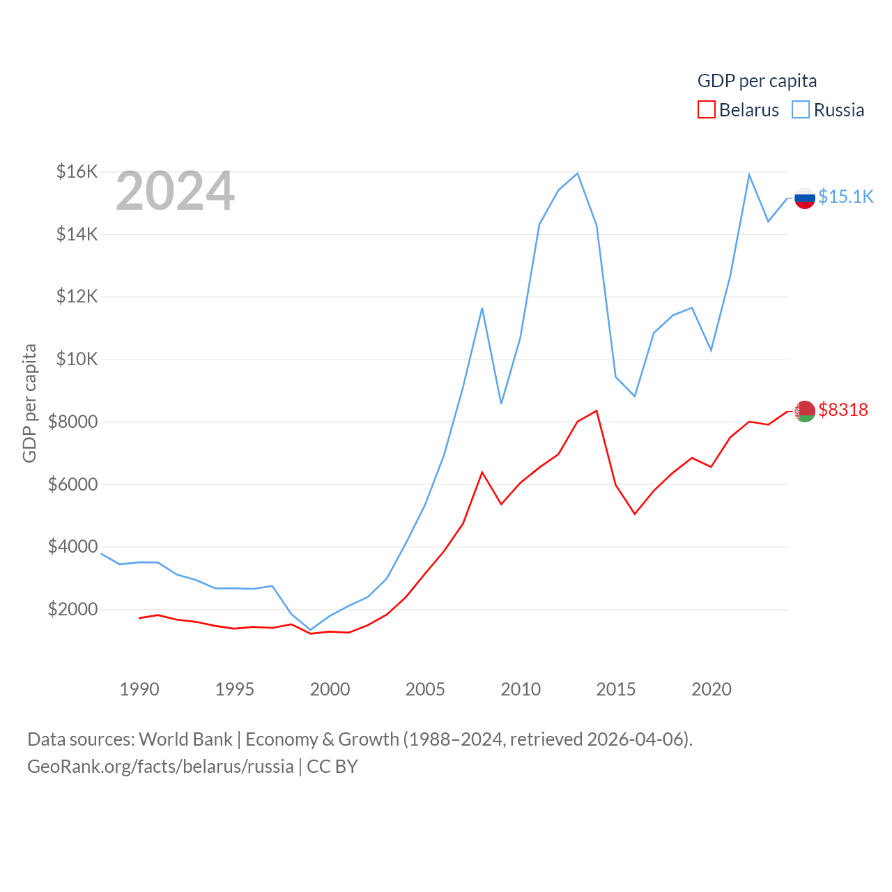 Data sources: World Bank | Economy & Growth (1988–2024, retrieved 2026-04-06).