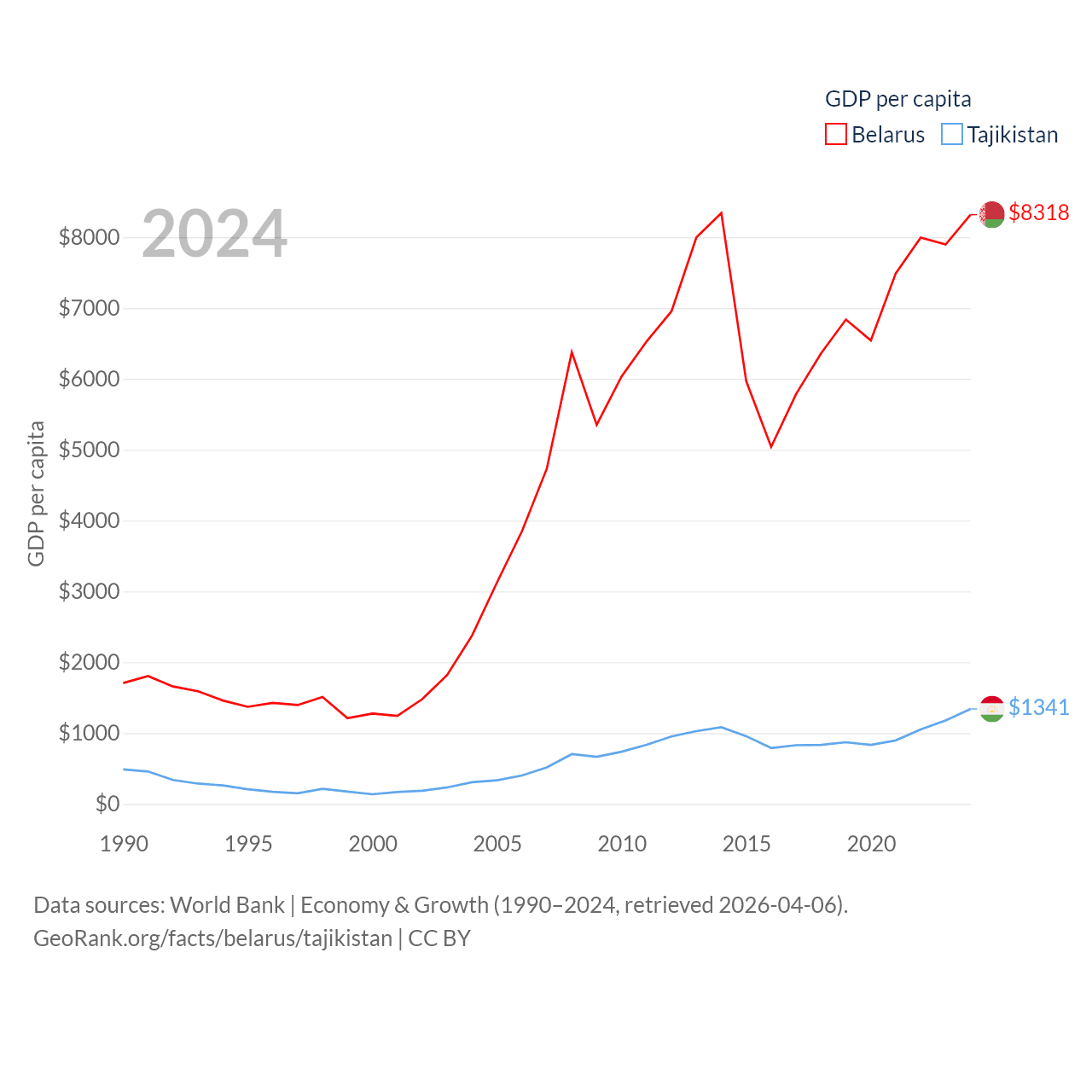 Data sources: World Bank | Economy & Growth (1990–2024, retrieved 2026-04-06).