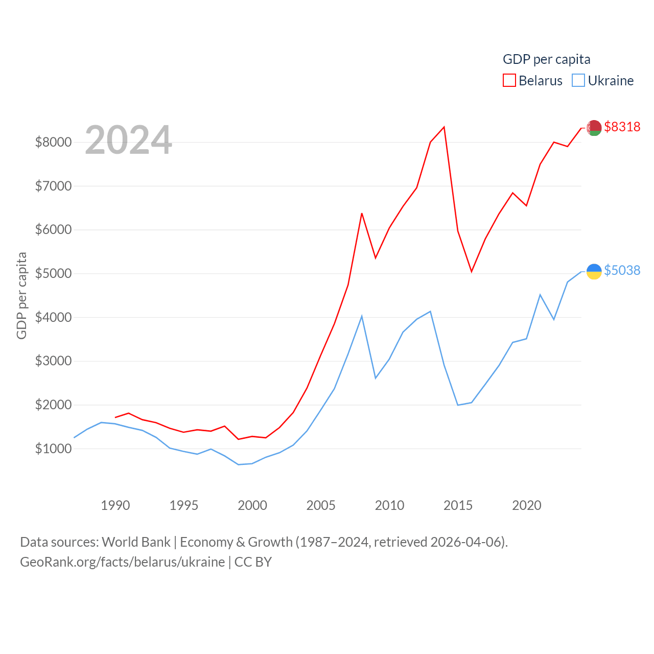 Data sources: World Bank | Economy & Growth (1987–2024, retrieved 2026-04-06).