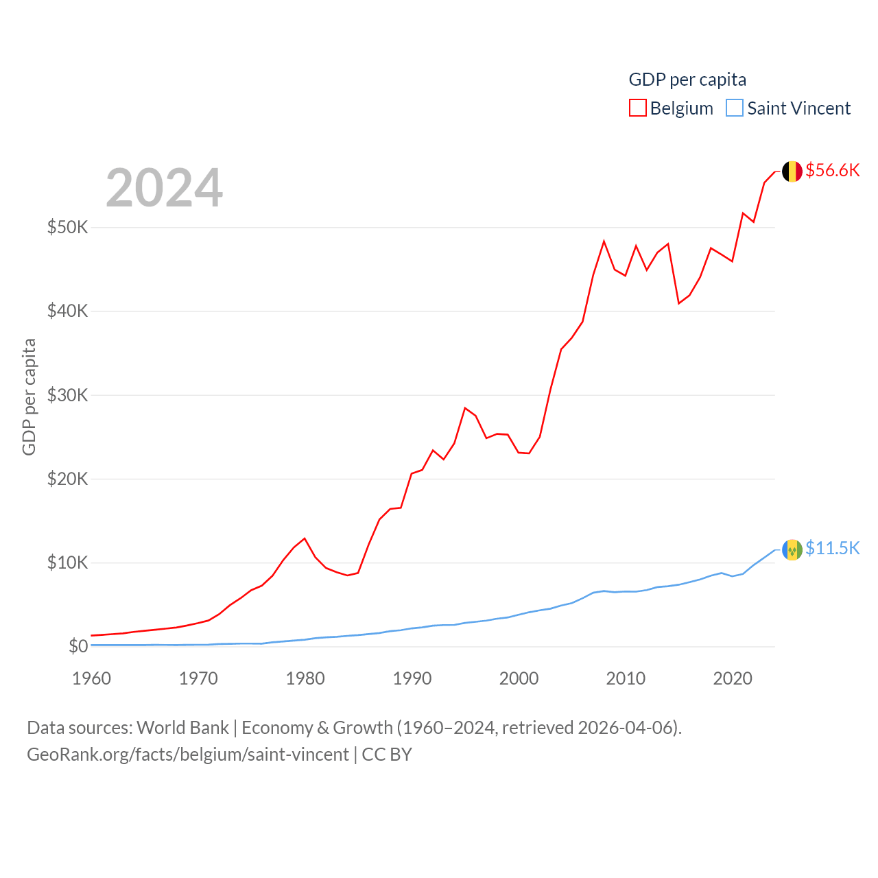 Belgium and Saint Vincent economies compared