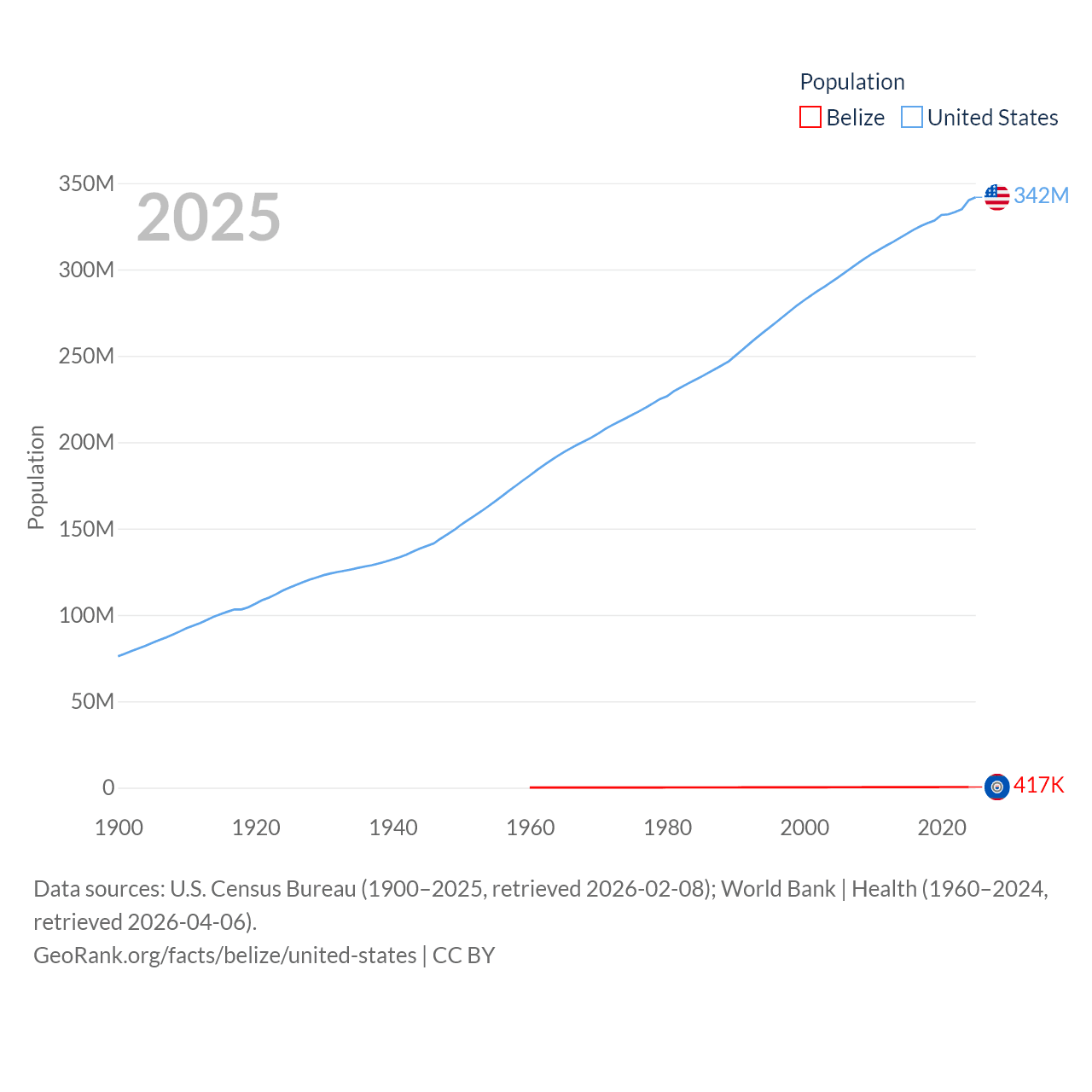 - U.S. Census Bureau (1900–2025, retrieved 2026-02-08)