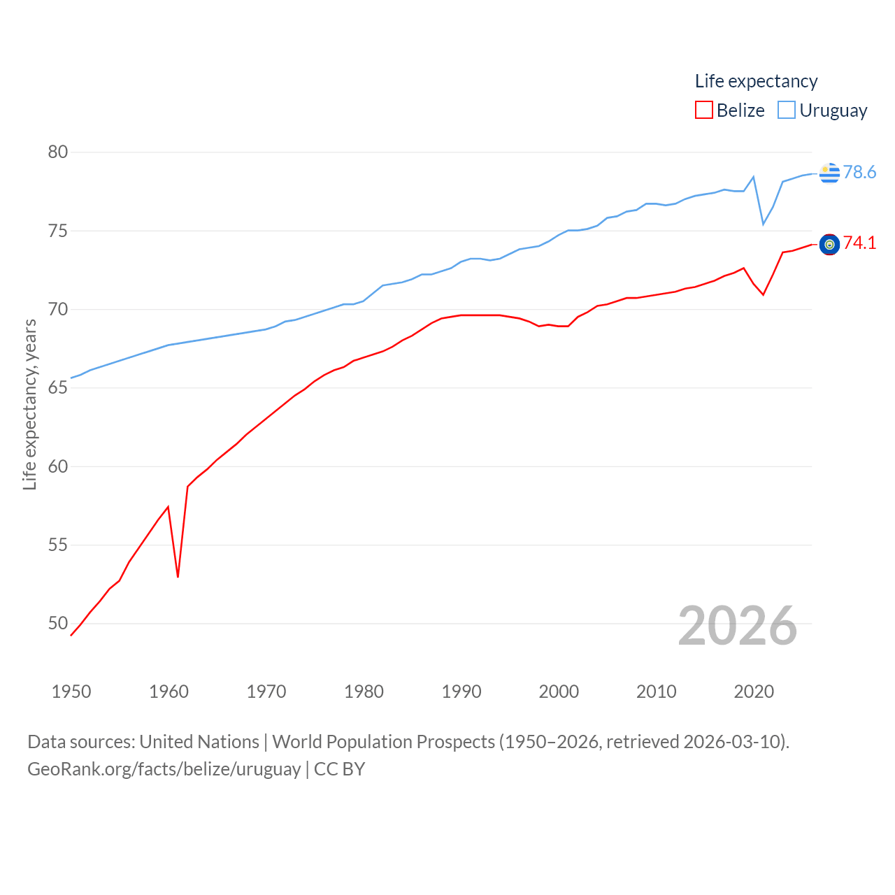 - United Nations | World Population Prospects (1950–2026, retrieved 2026-03-10)