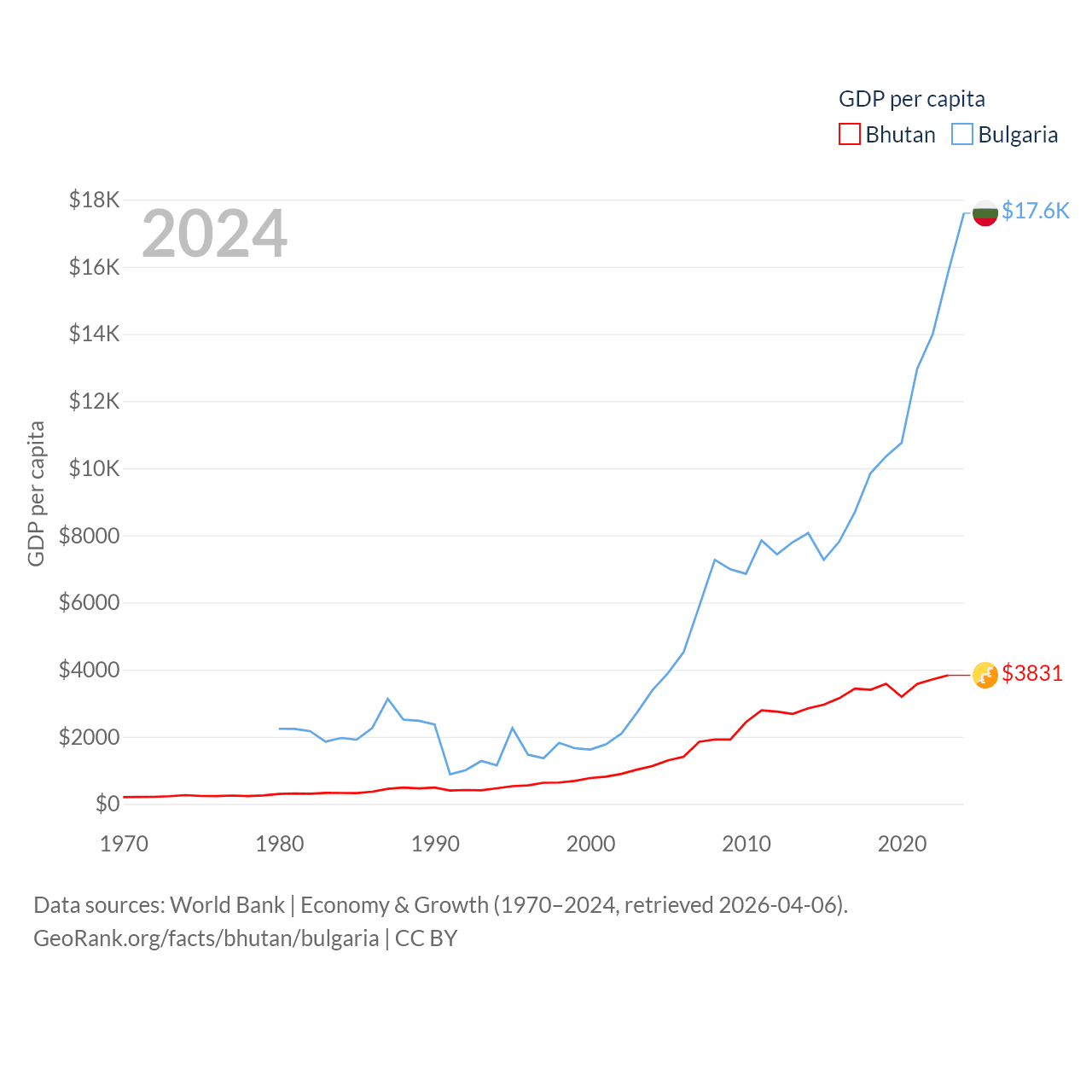 Bhutan and Bulgaria economies compared