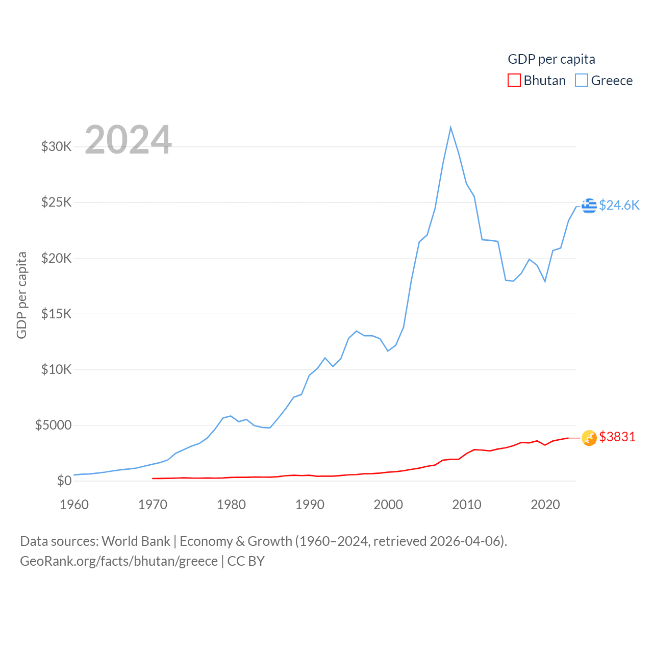 Bhutan and Greece economies compared