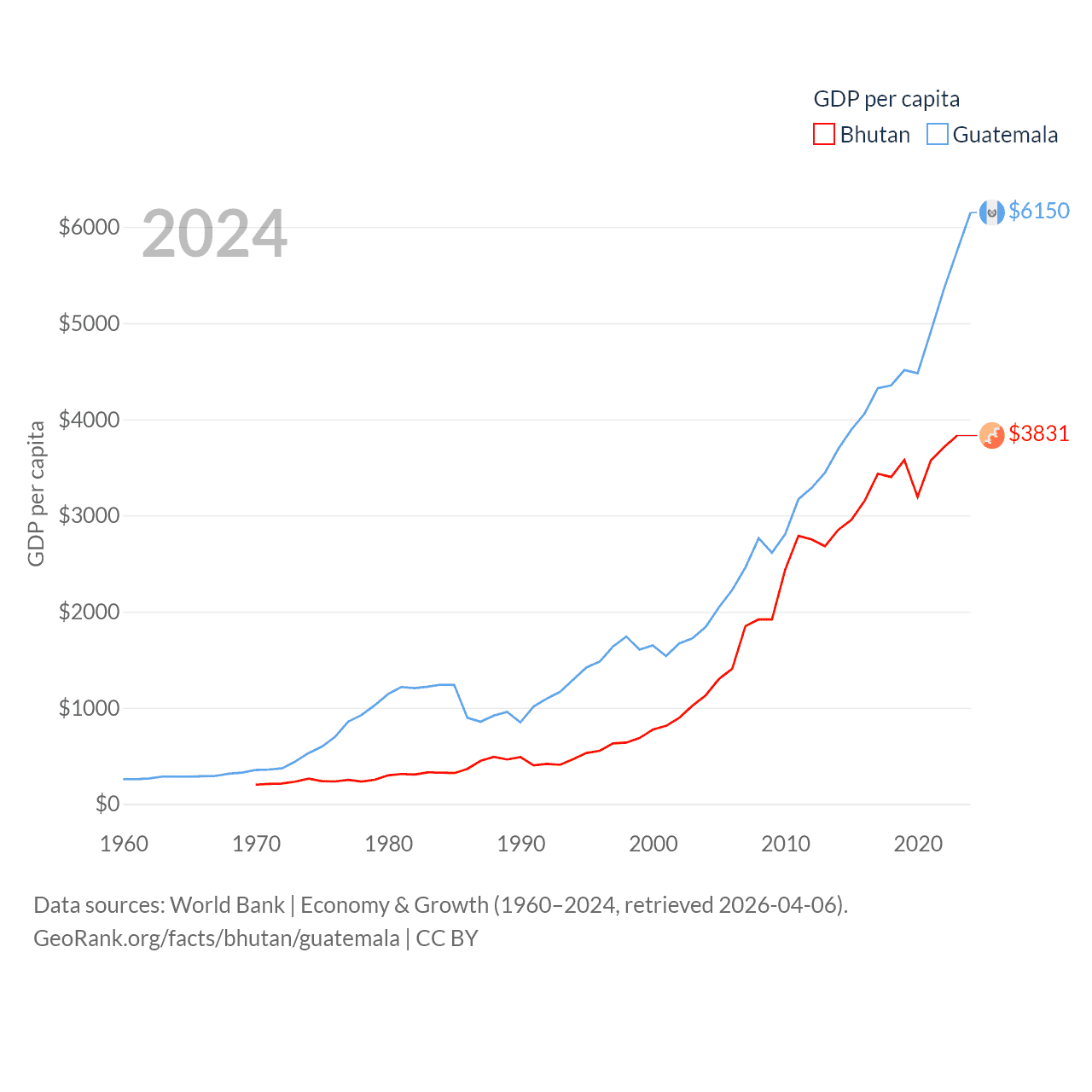 Bhutan and Guatemala economies compared