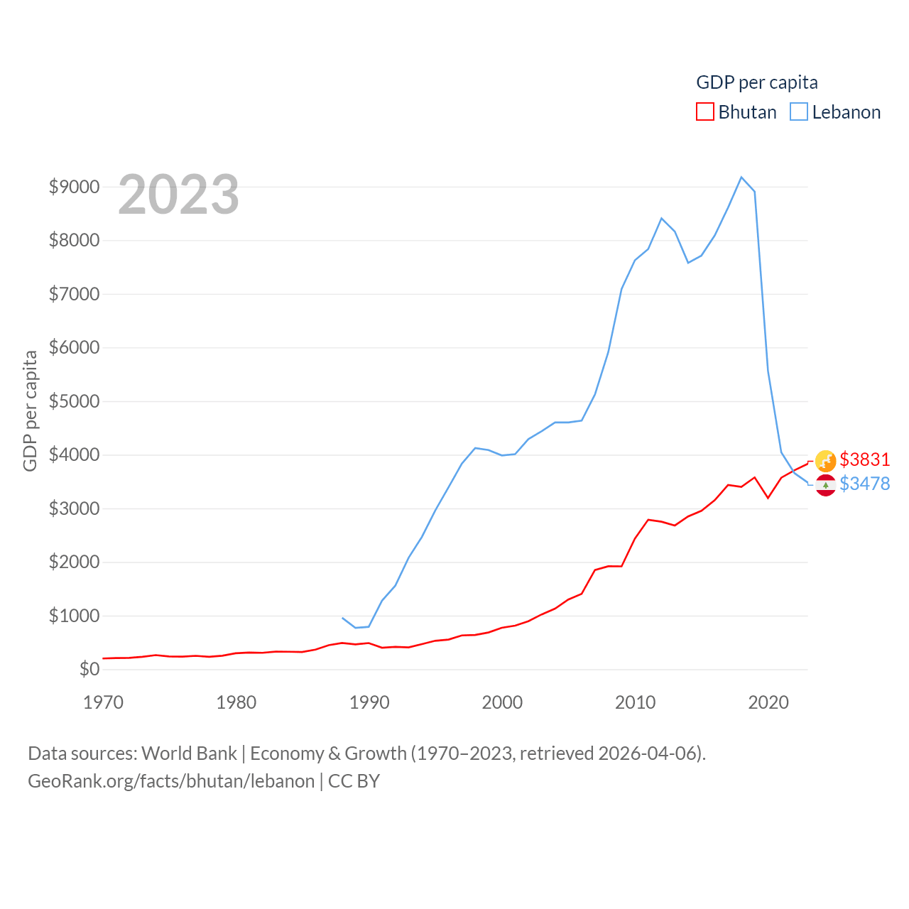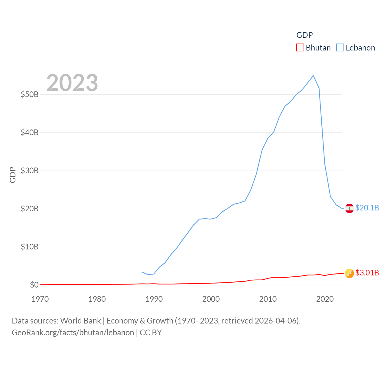 Bhutan and Lebanon economies compared