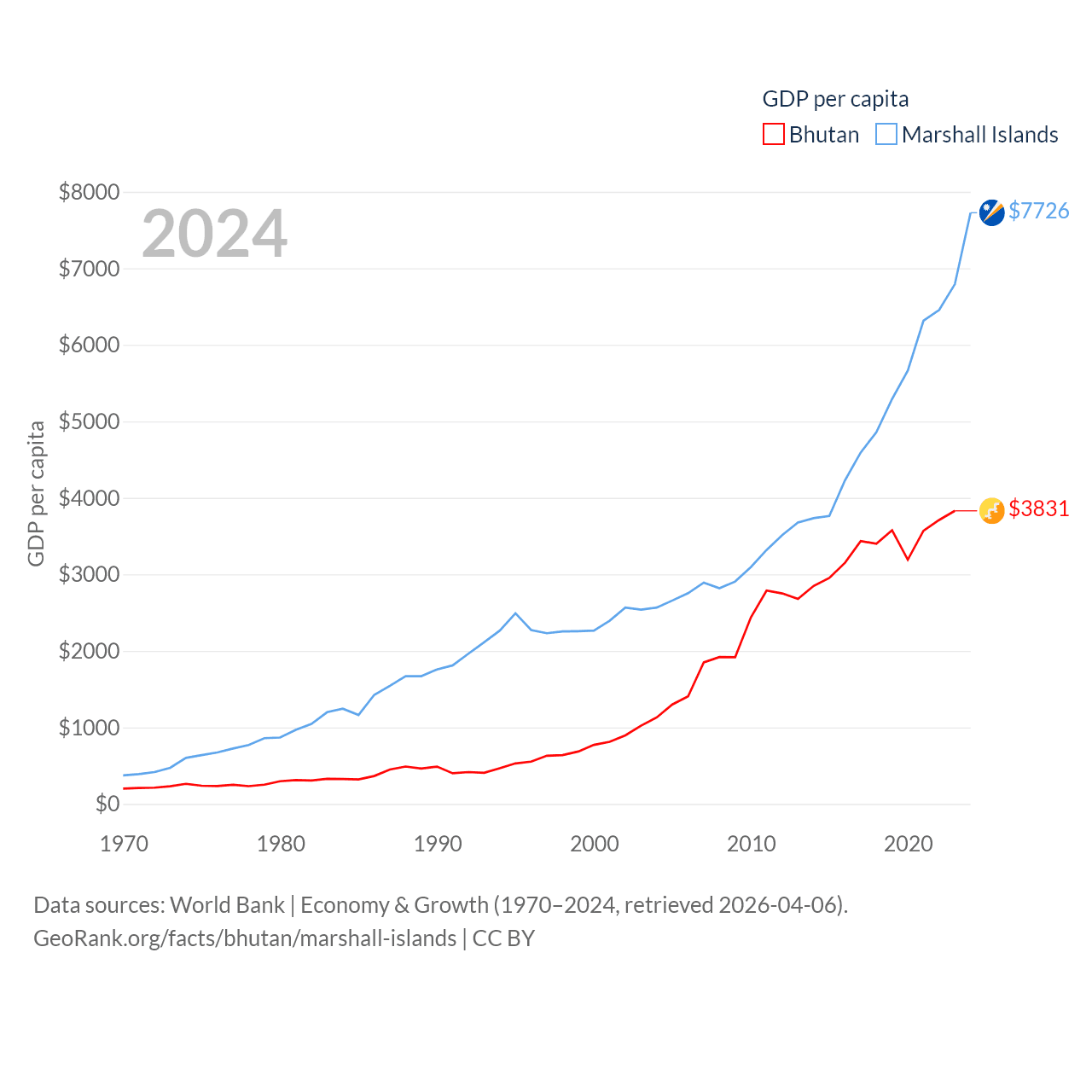 Bhutan and Marshall Islands economies compared