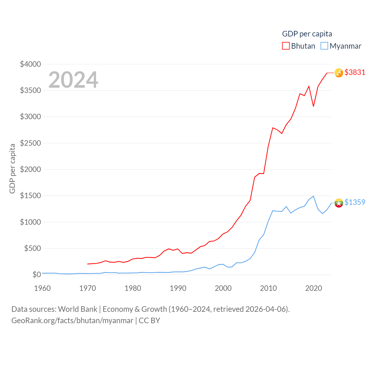 Bhutan and Myanmar economies compared