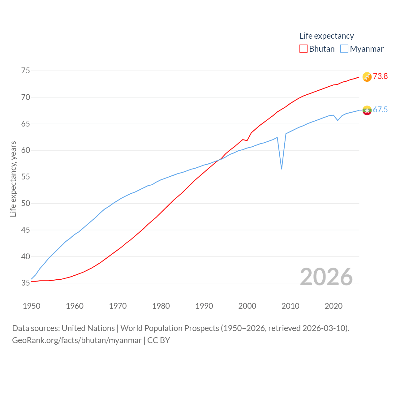 - United Nations | World Population Prospects (1950–2026, retrieved 2026-03-10)