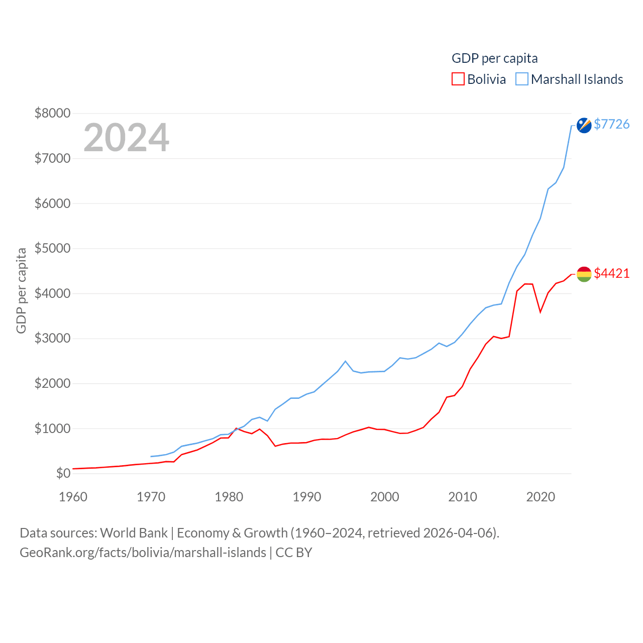 Bolivia and Marshall Islands economies compared