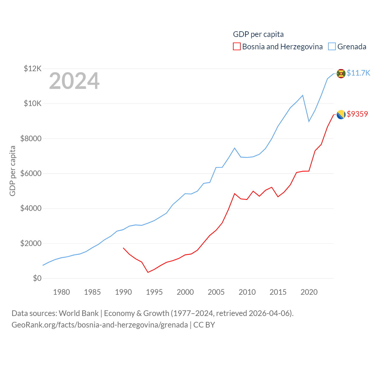 Data sources: World Bank | Economy & Growth (1977–2024, retrieved 2026-04-06).