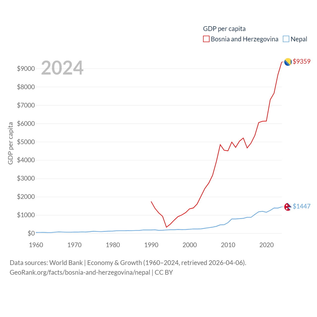 Bosnia and Herzegovina and Nepal economies compared