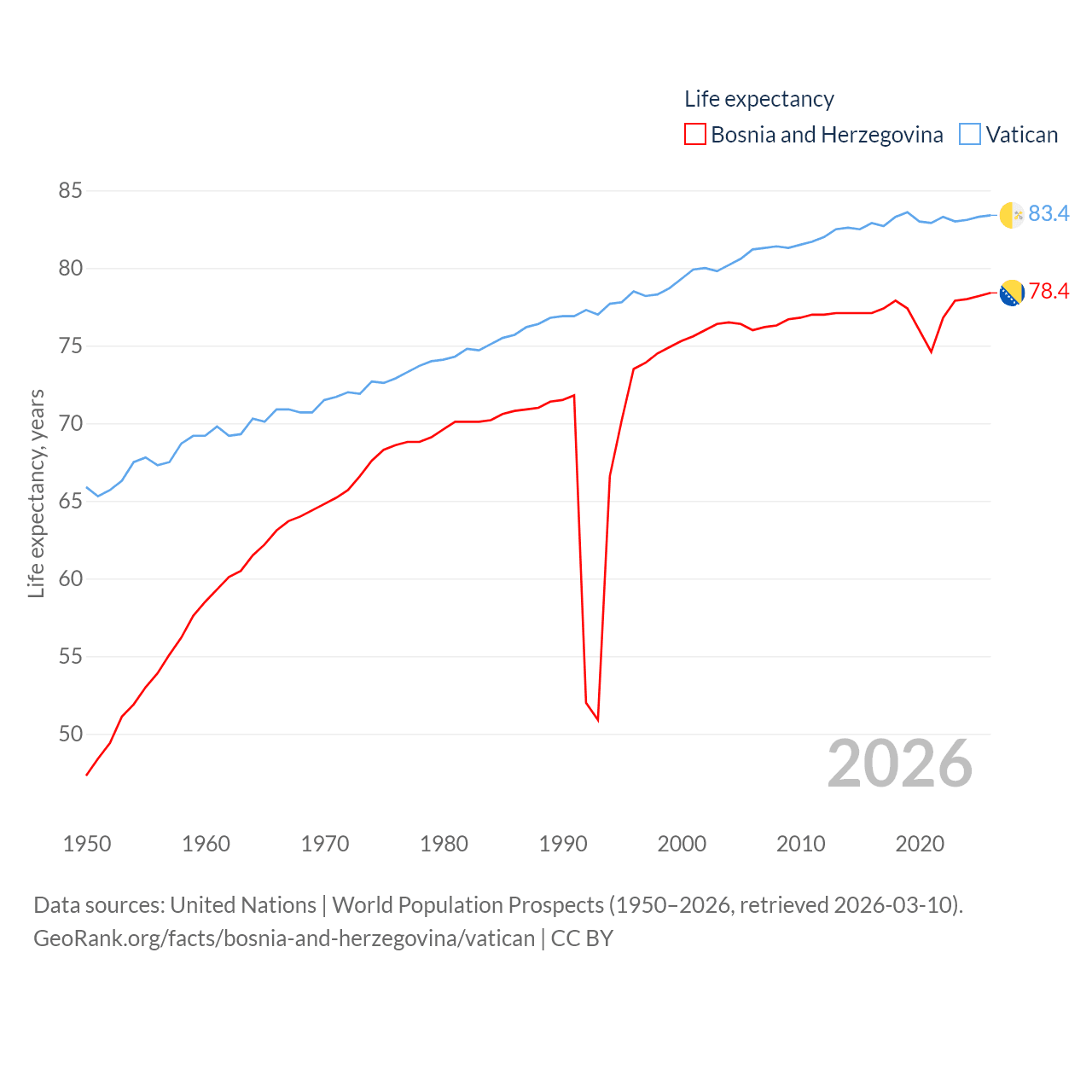 Bosnia and Herzegovina vs. Vatican life expectancy calculator