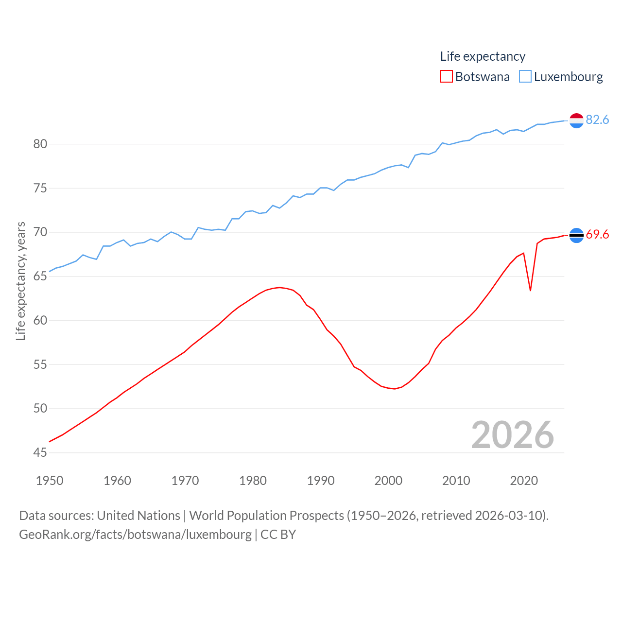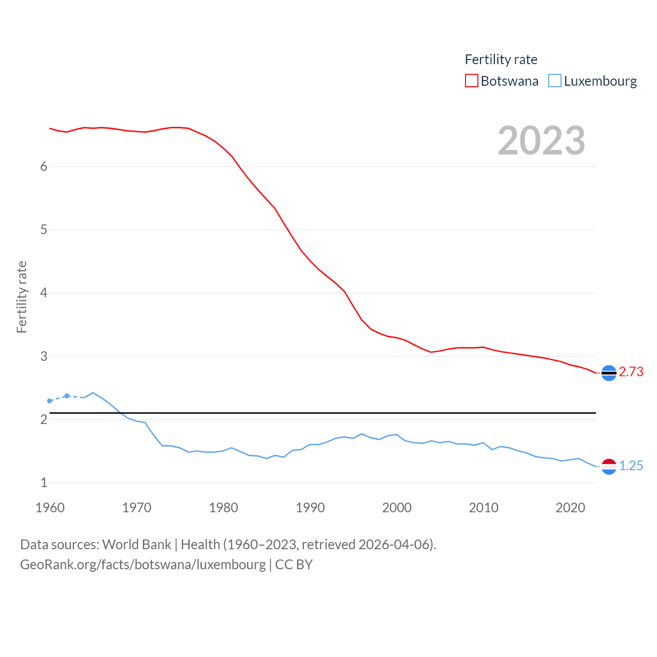 Botswana and Luxembourg: Comparison Charts