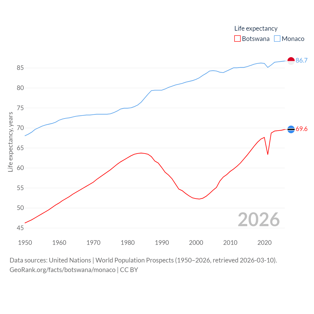 Botswana and Monaco: Comparison Charts