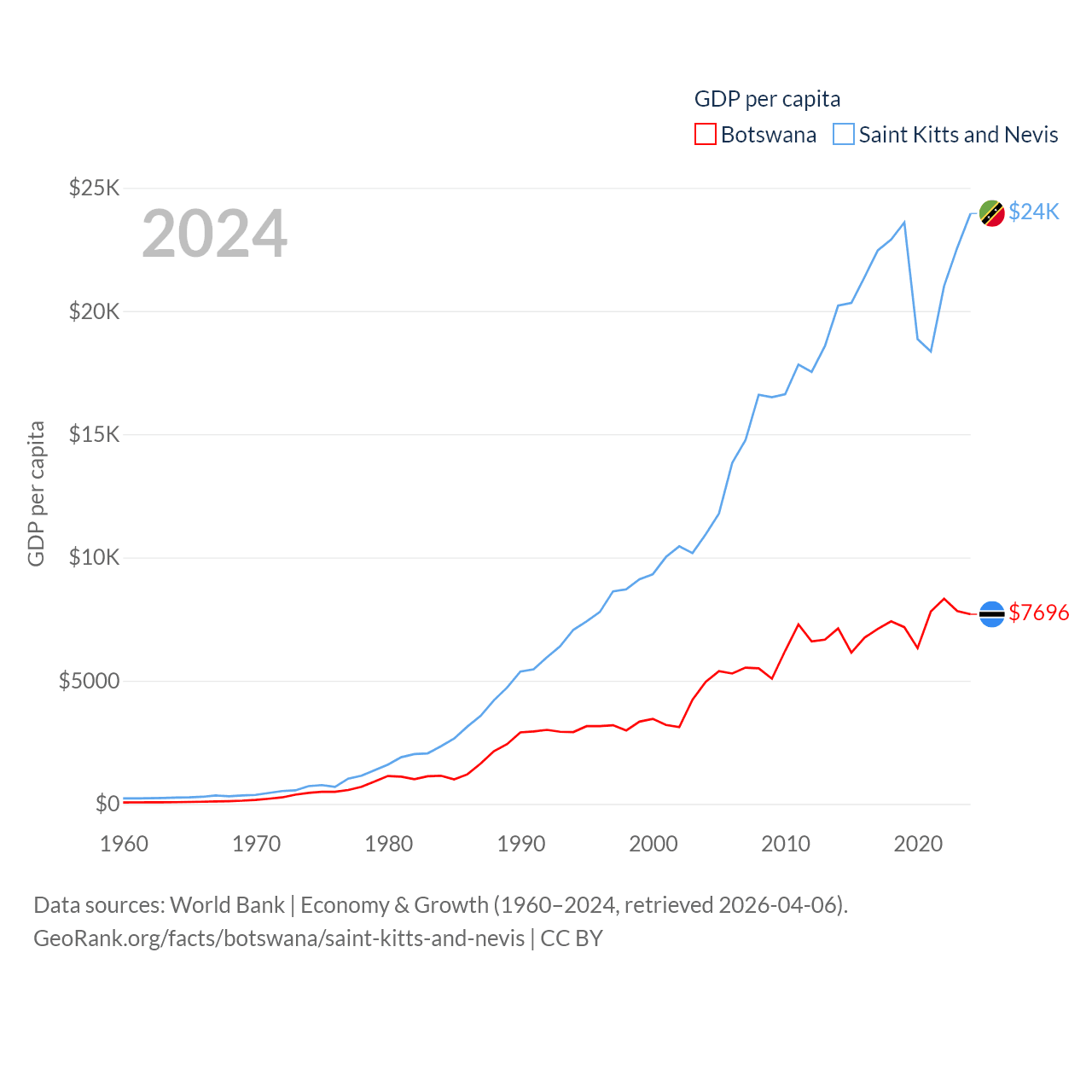 Botswana and Saint Kitts and Nevis economies compared