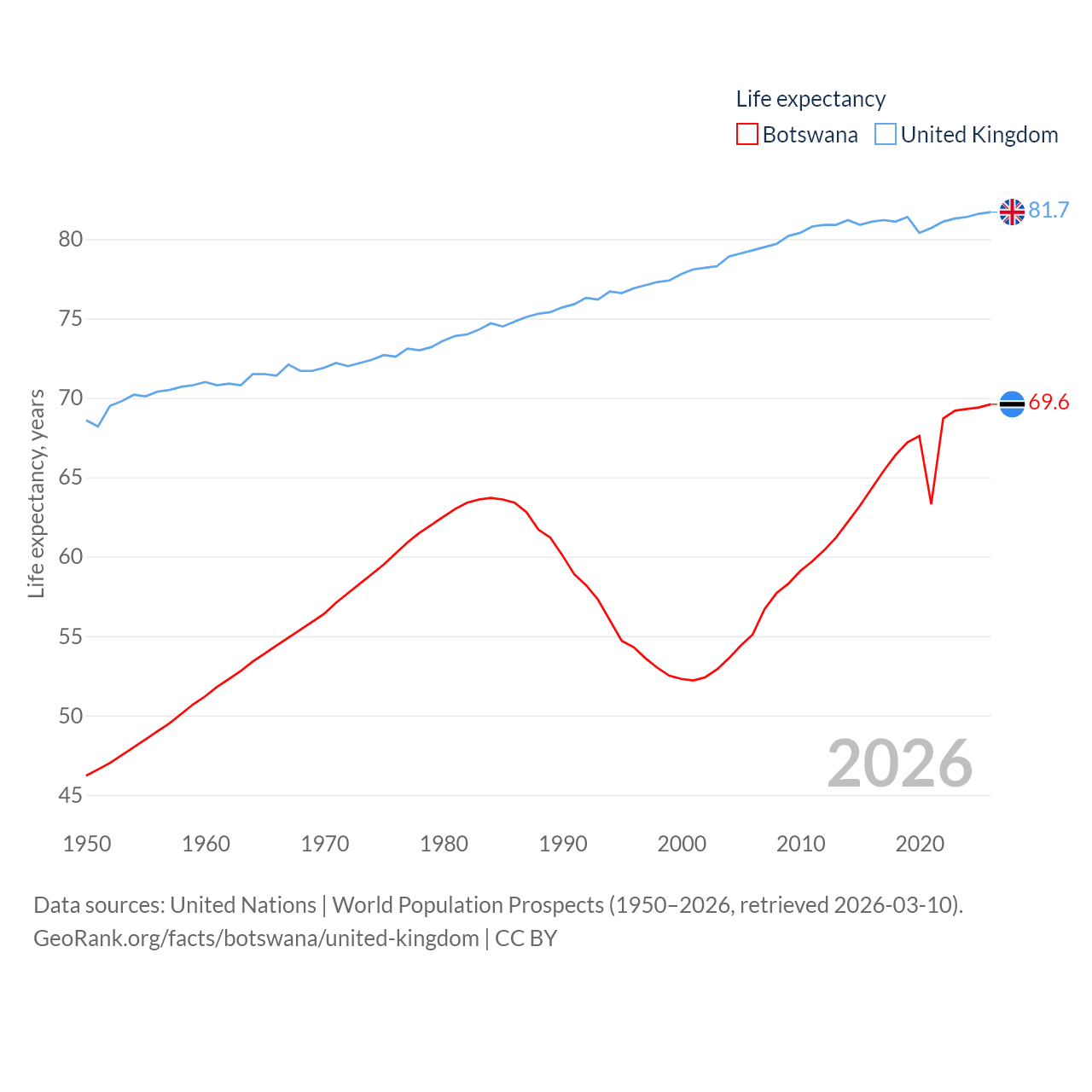 Botswana and United Kingdom: Comparison Charts