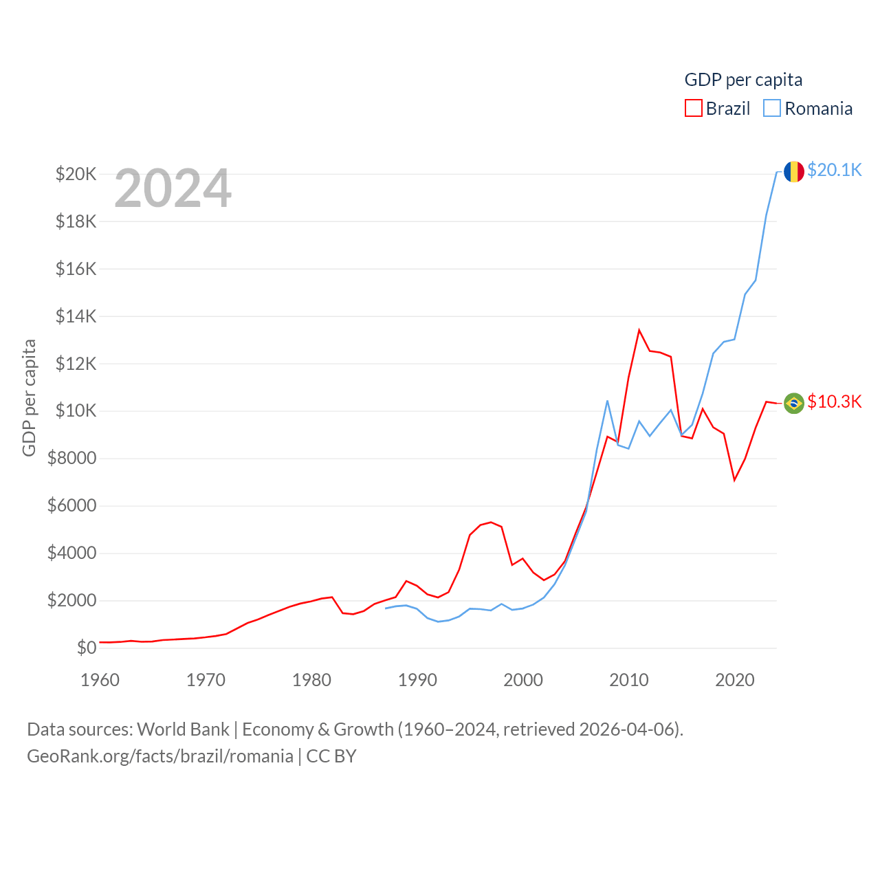Brazil and Romania economies compared