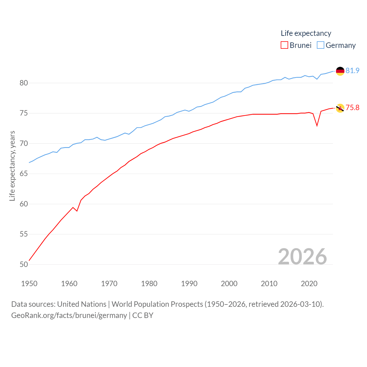 - United Nations | World Population Prospects (1950–2026, retrieved 2026-03-10)