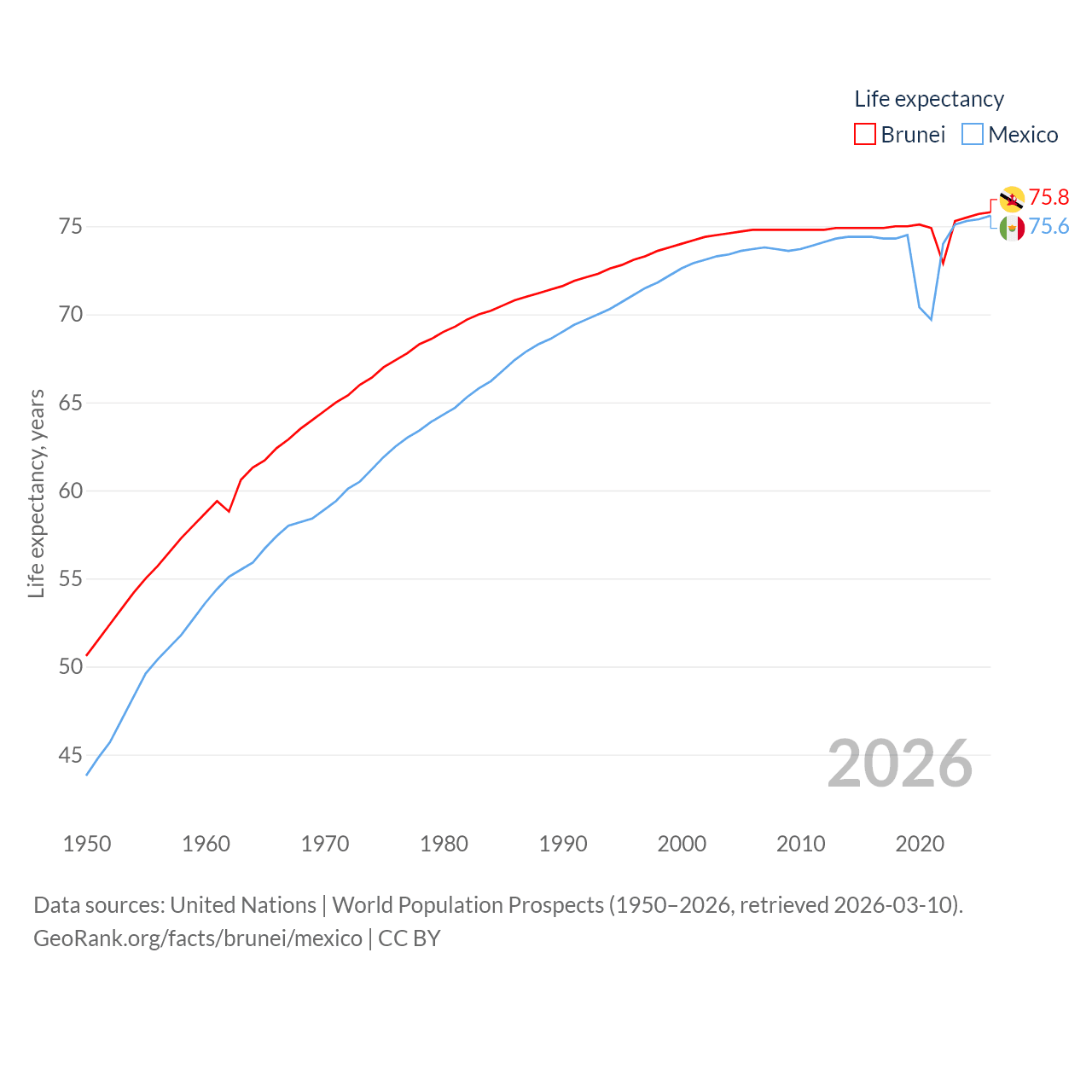 - United Nations | World Population Prospects (1950–2026, retrieved 2026-03-10)
