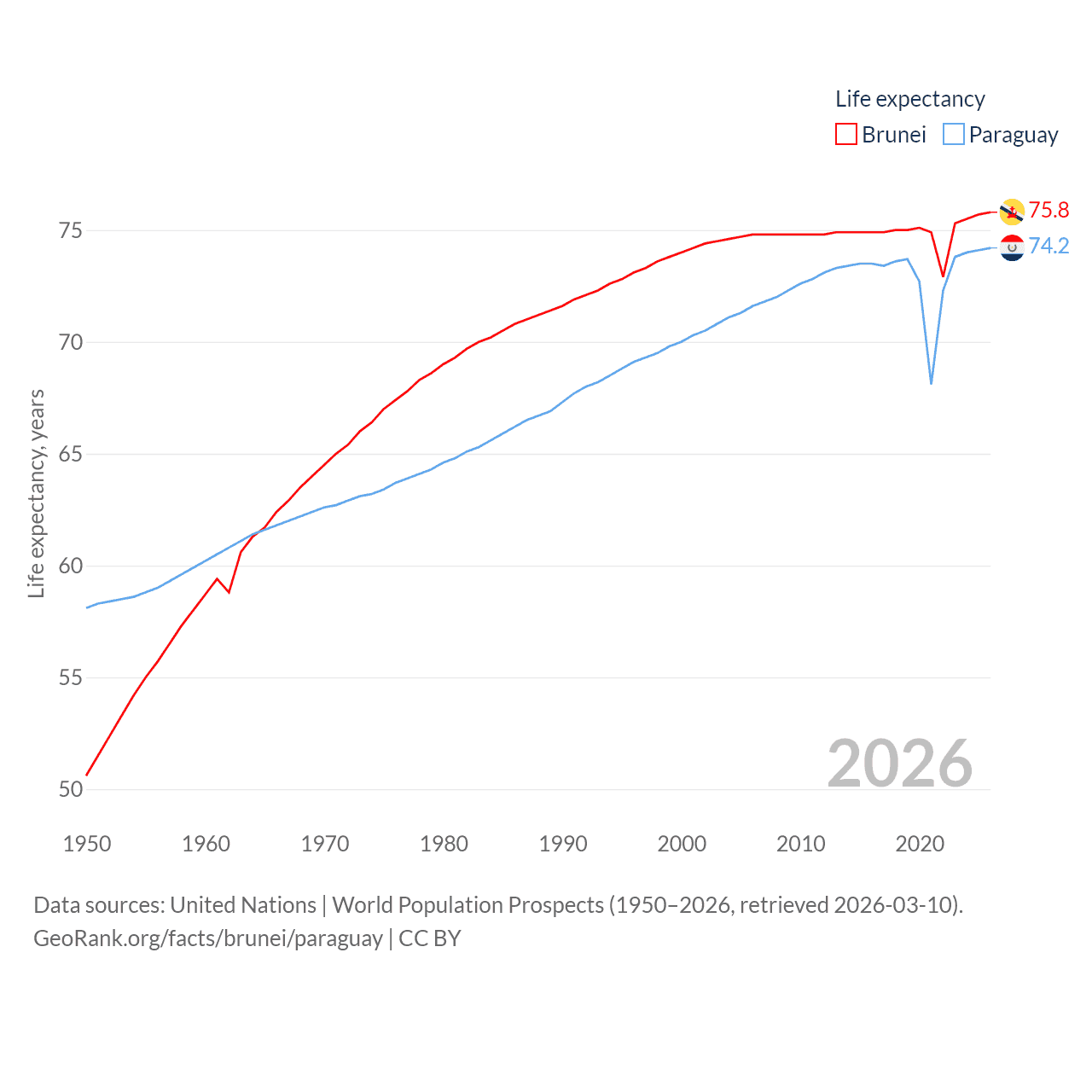 - United Nations | World Population Prospects (1950–2026, retrieved 2026-03-10)