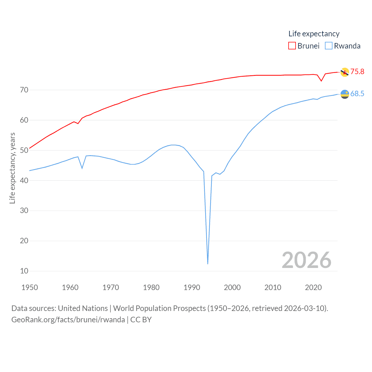 - United Nations | World Population Prospects (1950–2026, retrieved 2026-03-10)