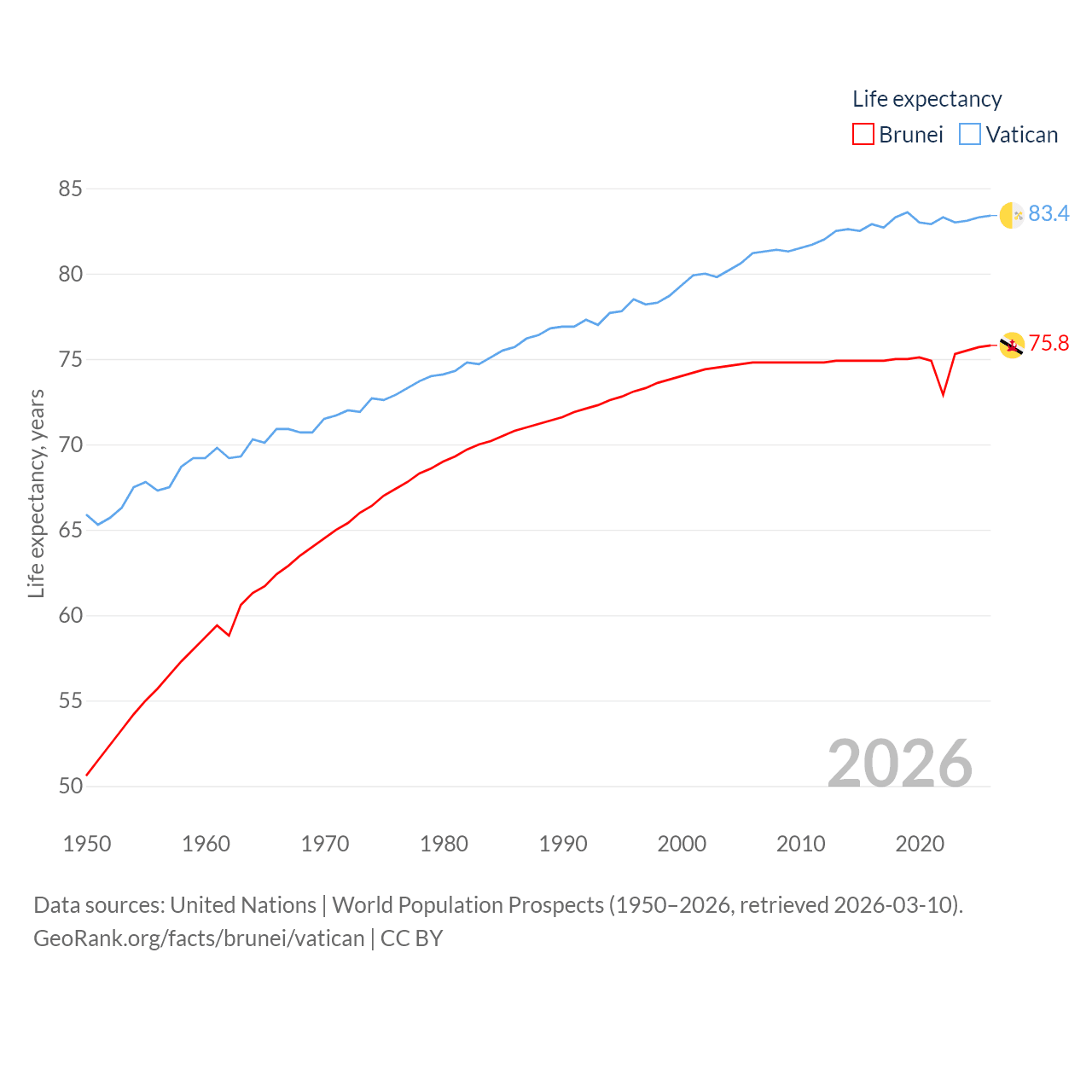 Brunei vs. Vatican life expectancy calculator