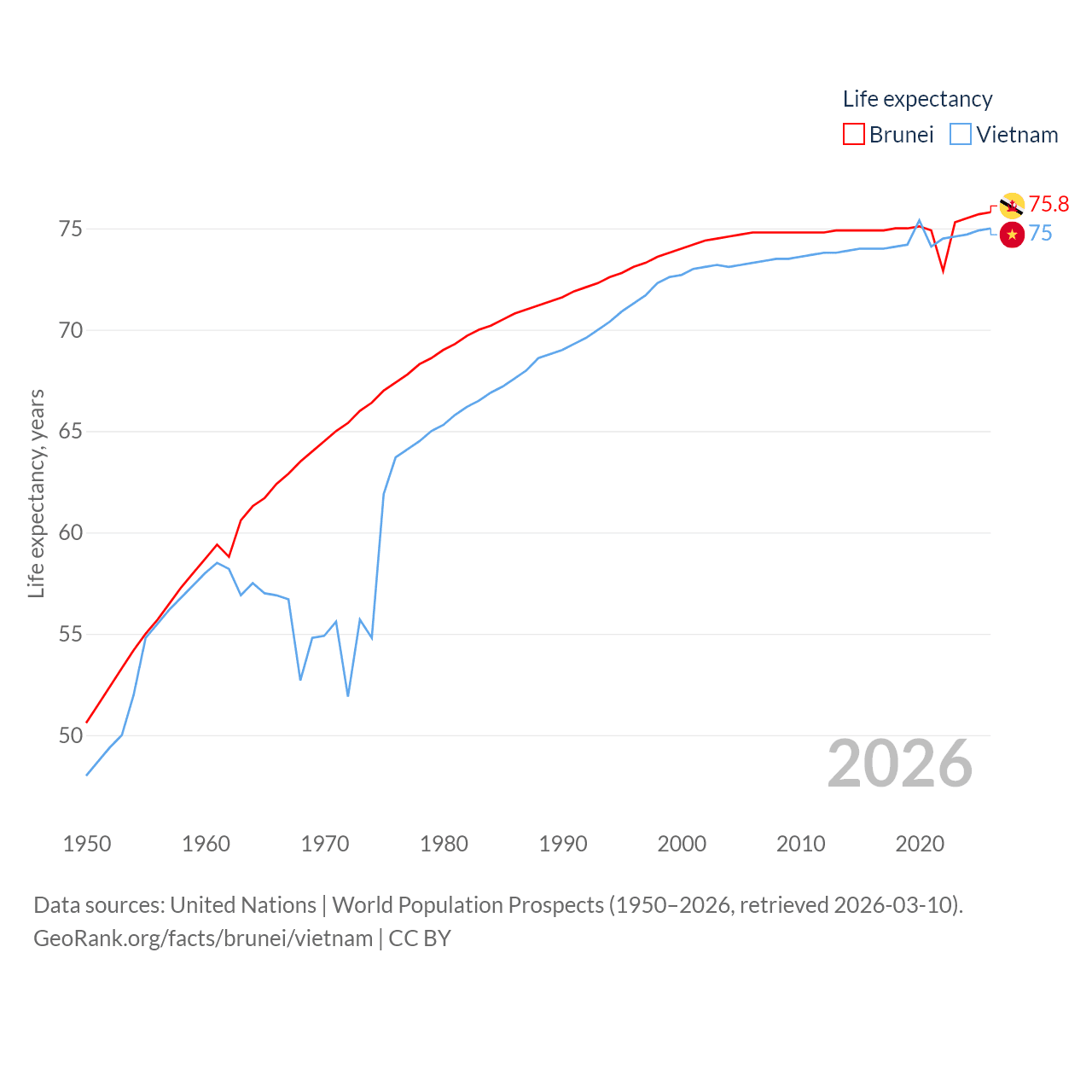 - United Nations | World Population Prospects (1950–2026, retrieved 2026-03-10)