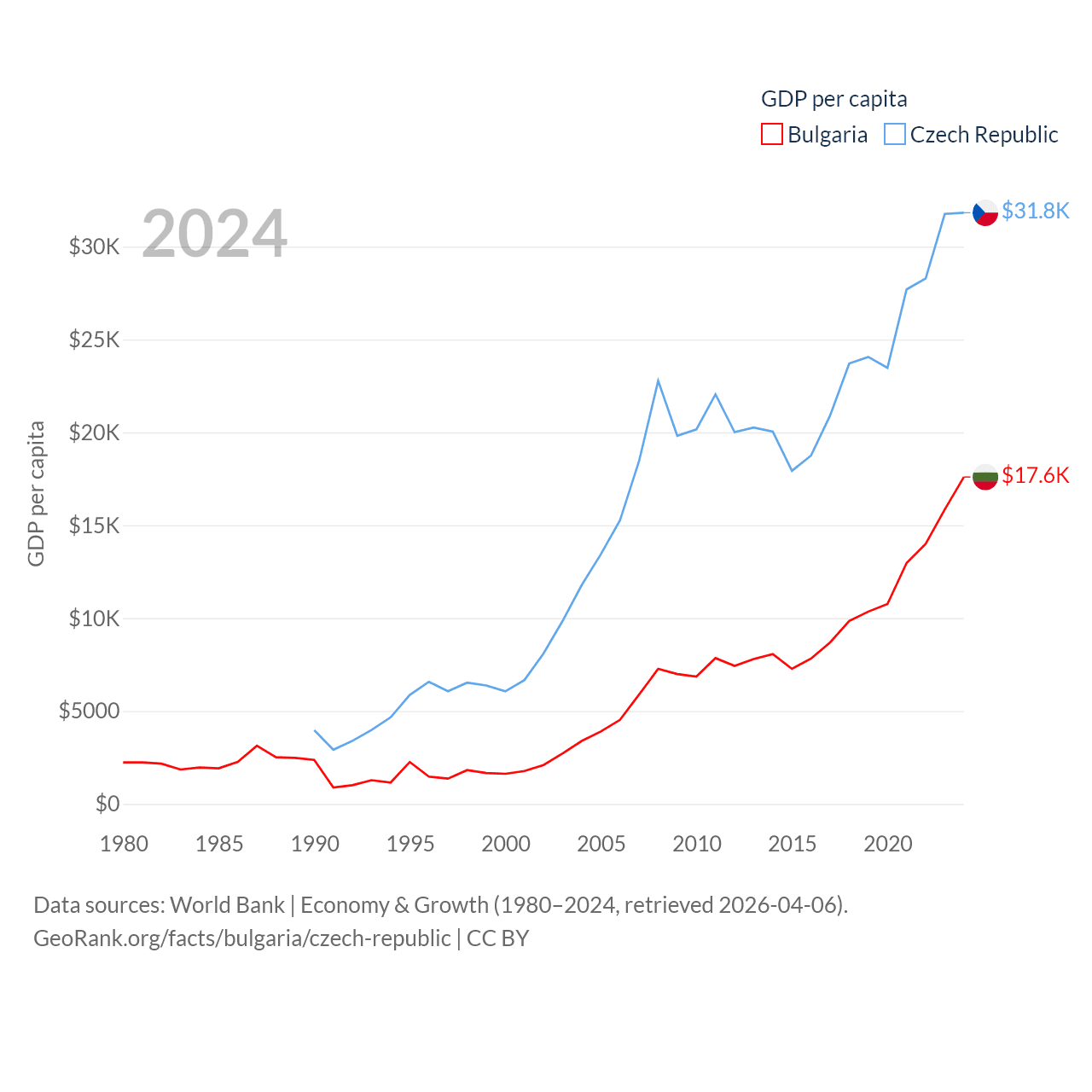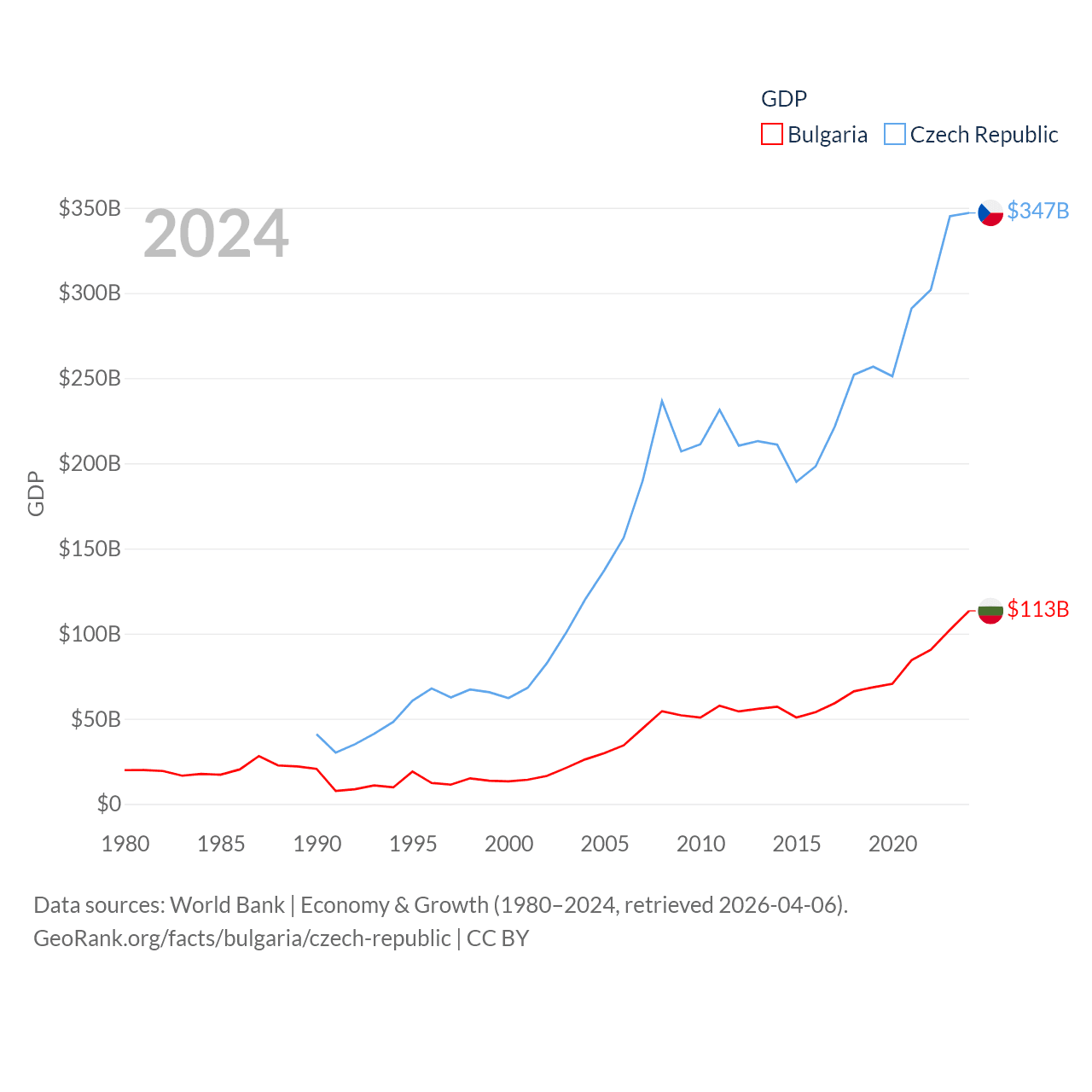 Data sources: World Bank | Economy & Growth (1980–2024, retrieved 2026-04-06).