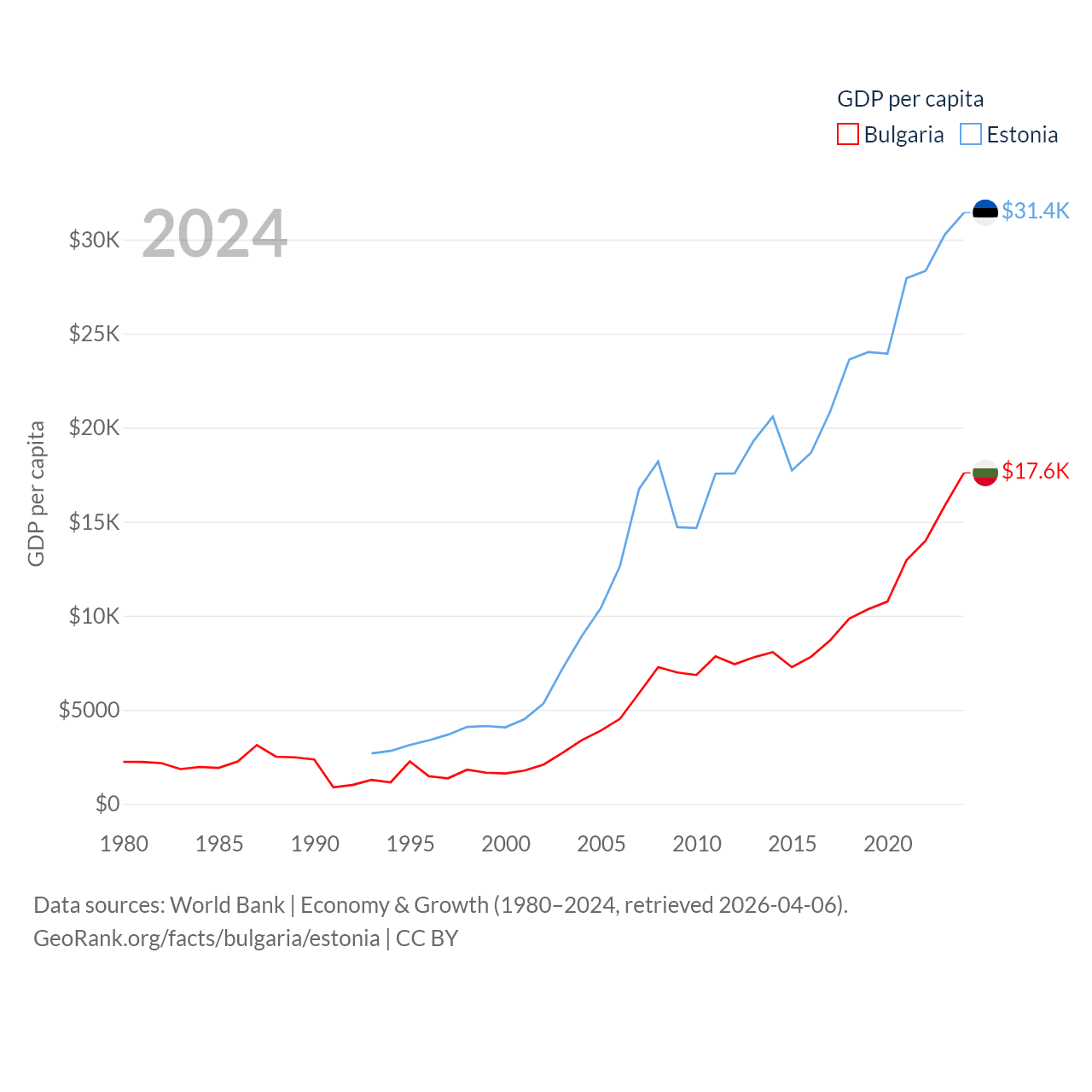Data sources: World Bank | Economy & Growth (1980–2024, retrieved 2026-04-06).